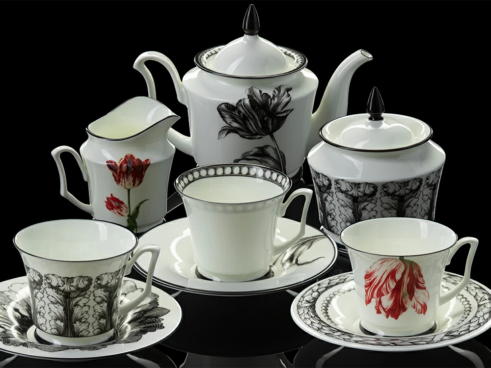 Каждое изделие сервиза, созданного на Императорском фарфоровом заводе – старейшем промышленном и торговом предприятии Санкт-Петербурга и России, имеет свой индивидуальный рисунок. Такая художественная стратегия создает безграничную вариативность при сервировке. Кроме того, в сервизе на шесть персон представлено два варианта чайника, что позволяет одновременно подавать к столу разные сорта чая.