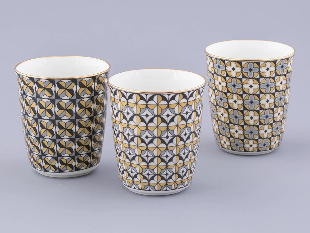 Готический орнамент масверк и эффектный оп-арт – художник Любовь Цветкова объединила два направления в своих рисунках. Итогом авторского прочтения стал узор Elegant Clever, который украсил восхитительные стаканы из костяного фарфора. Стаканы представлены в виде подарочного набора в эксклюзивной упаковке и дополнены костерами из натуральной кожи.