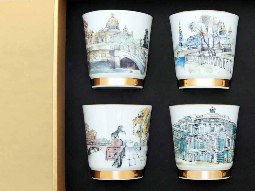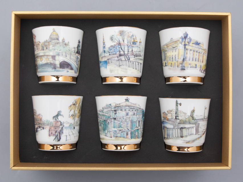 Подарочный набор стопок форма Сувенирная 1, рисунок Виды С-Петербурга арт. 81.31737.00.1