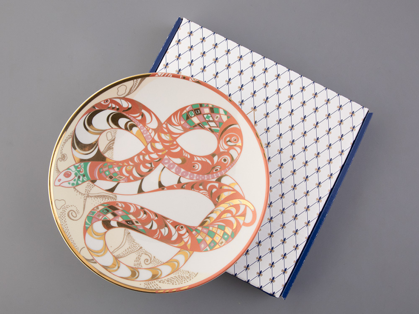 Рисунок на декоративной тарелке художник Нина Троицкая посвящает экзотическому змею, который во многих культурах символизирует мудрость, плодородие и новую жизнь. Декоративная тарелка станет замечательным украшением интерьера, подарком для близких и всех ценителей искусства. Тарелку можно расположить как на горизонтальной поверхности, так и на стене (для крепления на обороте тарелки предусмотрены отверстия).