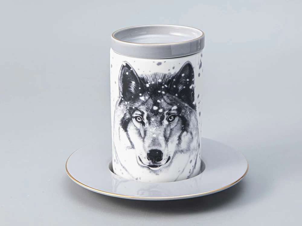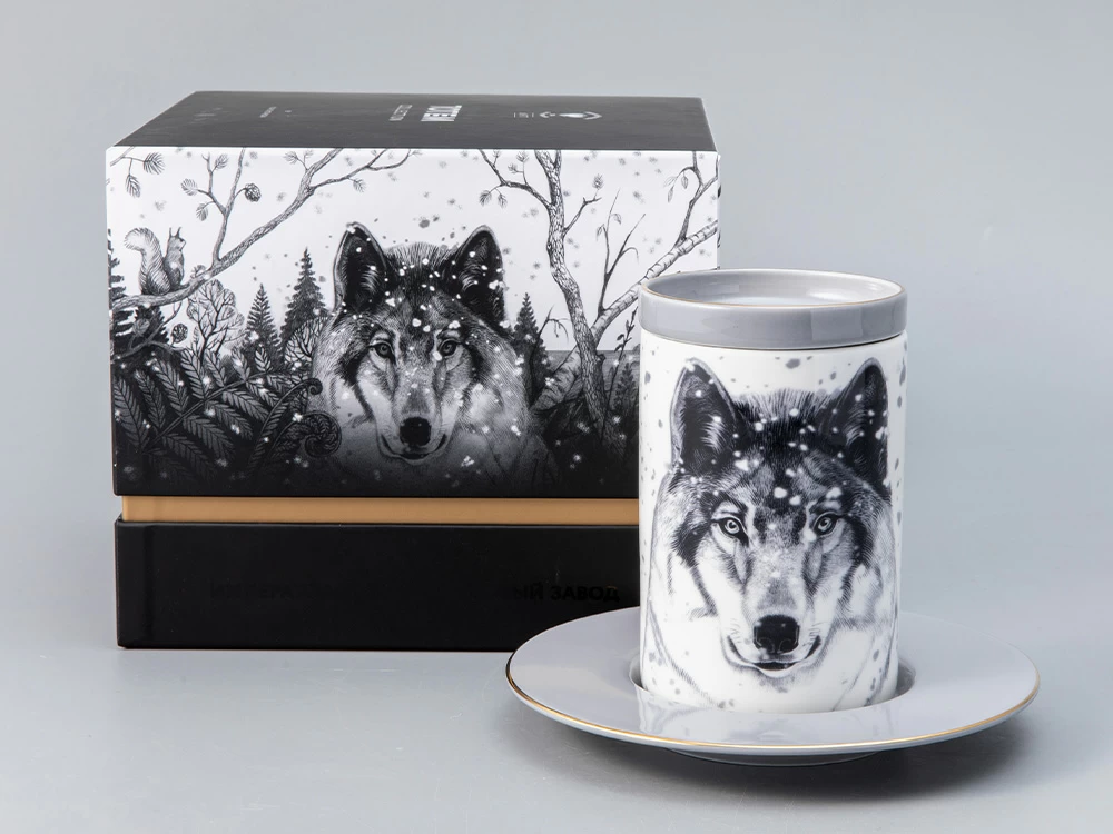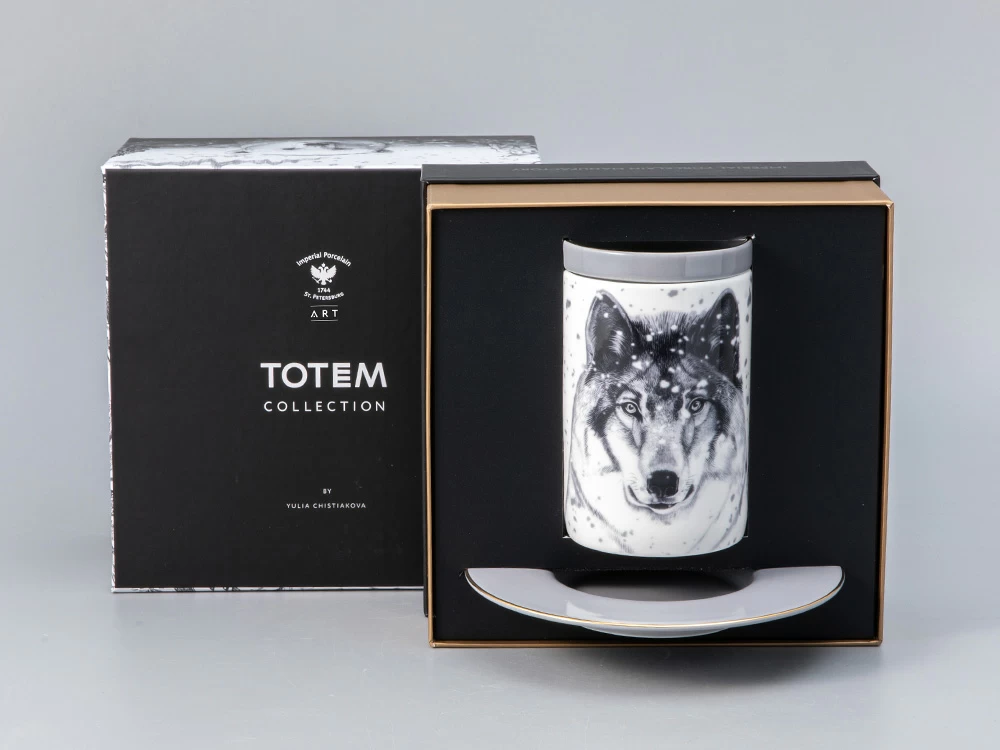 Бокал с блюдцем Тотем в подарочной упаковке, рисунок Волк, арт. 81.28374.00.1