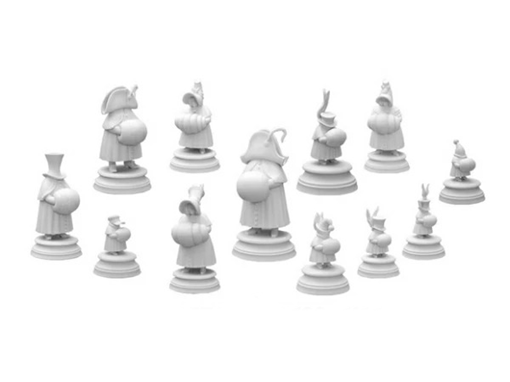 Скульптуры «Уход гостей» - это персонажи из балета «Щелкунчик», поставленного на сцене Мариинского театра в декорациях и костюмах всемирно известного художника. Пластически элегантные и эмоционально теплые работы Шемякина в фарфоре легко узнаваемы. Скульптуры отличаются филигранной проработкой деталей в традициях европейского фарфора XVIII века. Белоснежный вариант фигурок, выполненных в бисквите, отличается особой выразительностью и несравненной изящностью.