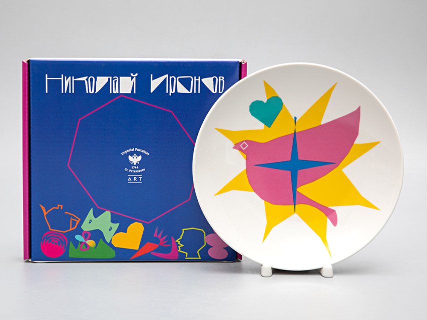 Декоративная тарелка входит в коллекцию фарфора, дизайн которой создал искусственный интеллект – Николай Иронов, разработанный Студией Артемия Лебедева. Этот дизайнерский интеллект, презентованный в 2020 году, способен молниеносно выполнять творческую работу: разрабатывать уникальные логотипы и создавать на их основе айдентику. В портфолио Николая Иронова – десятки успешных коммерческих проектов для блогеров, кафе, приложений, продуктов массового потребления. Эта коллаборация ИФЗ и Студии Артемия Лебедева – настоящее откровение для ценителей «белого золота», которое заставит по-новому взглянуть на искусство фарфора.
