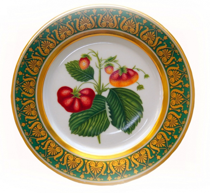 Декоративная тарелка «Клубника» из сервиза «Гербовый» изготовлена на Императорском фарфоровом заводе с оригинала из коллекции государственного музея-заповедника «Павловск».