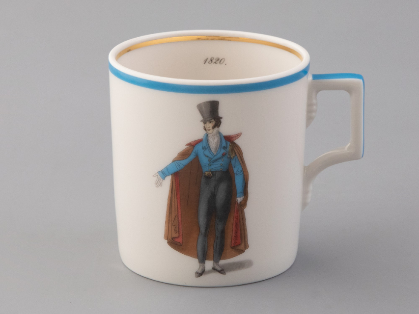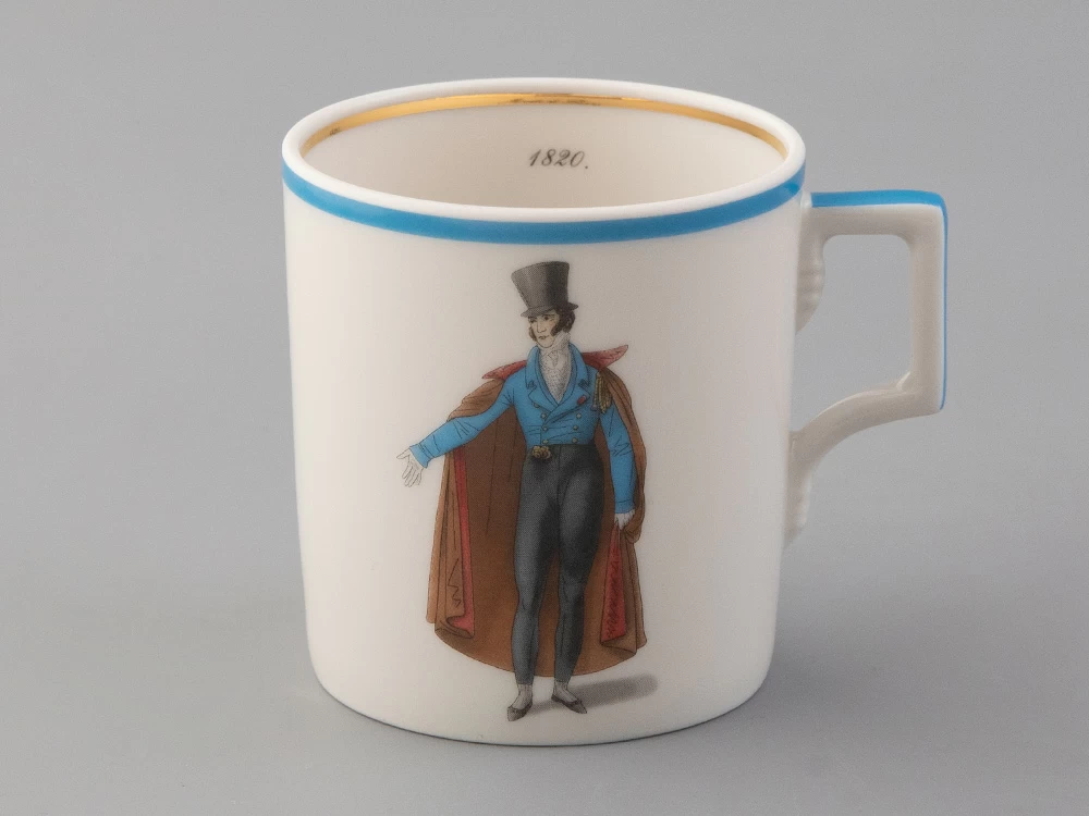 Новая коллекция из серии «История моды», произведенной на ИФЗ, называется «Денди» и включает в себя шесть чайных пар на форме «Гербовая», созданной на заводе в середине XIX века и восстановленной по музейному образцу из собрания Государственного Эрмитажа.