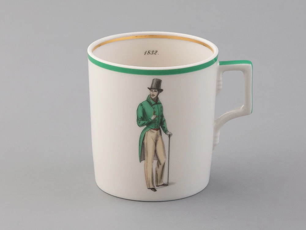 Новая коллекция из серии «История моды», произведенной на ИФЗ, называется «Денди» и включает в себя шесть чайных пар на форме «Гербовая», созданной на заводе в середине XIX века и восстановленной по музейному образцу из собрания Государственного Эрмитажа.