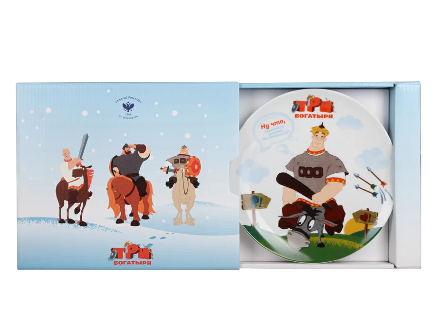 И вот теперь герои известной на весь мир эпопеи живут не только на экранах, но и на фарфоре – декоративных тарелках, детских комплектах, кофейных наборах и бокалах. Красочные, яркие изображения забавных и запоминающихся былинных образов и сюжетов передадут неповторимую атмосферу русских сказок, увлекут в удивительное путешествие с головокружительными приключениями, будут радовать каждый день и создадут позитивное настроение.