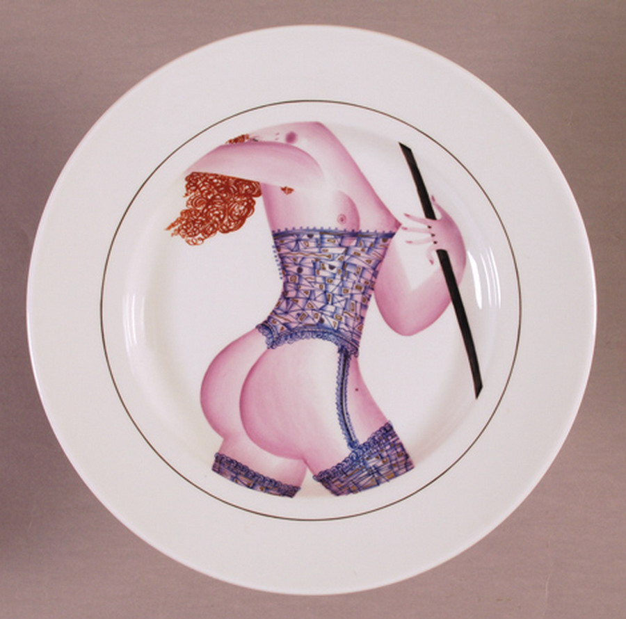 Фигуры пышнотелых красавиц этой серии запечатлены в напряженной динамике. Головы и ноги срезаны. Этот прием акцентирует внимание на теле, изображенном в смелых и вызывающих позах, в то же время оставляя некоторую недосказанность. В трактовке сюжета ощущается гротеск и ирония: серия тарелок рождена «реакцией на нашествие «гламура», заполнившего телевидение и глянцевые журналы» - рассказывает нам автор.