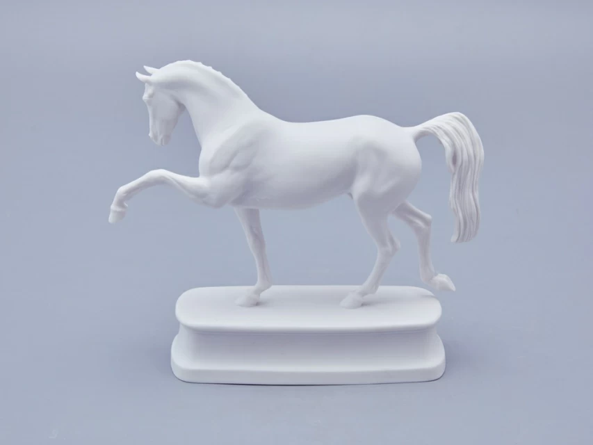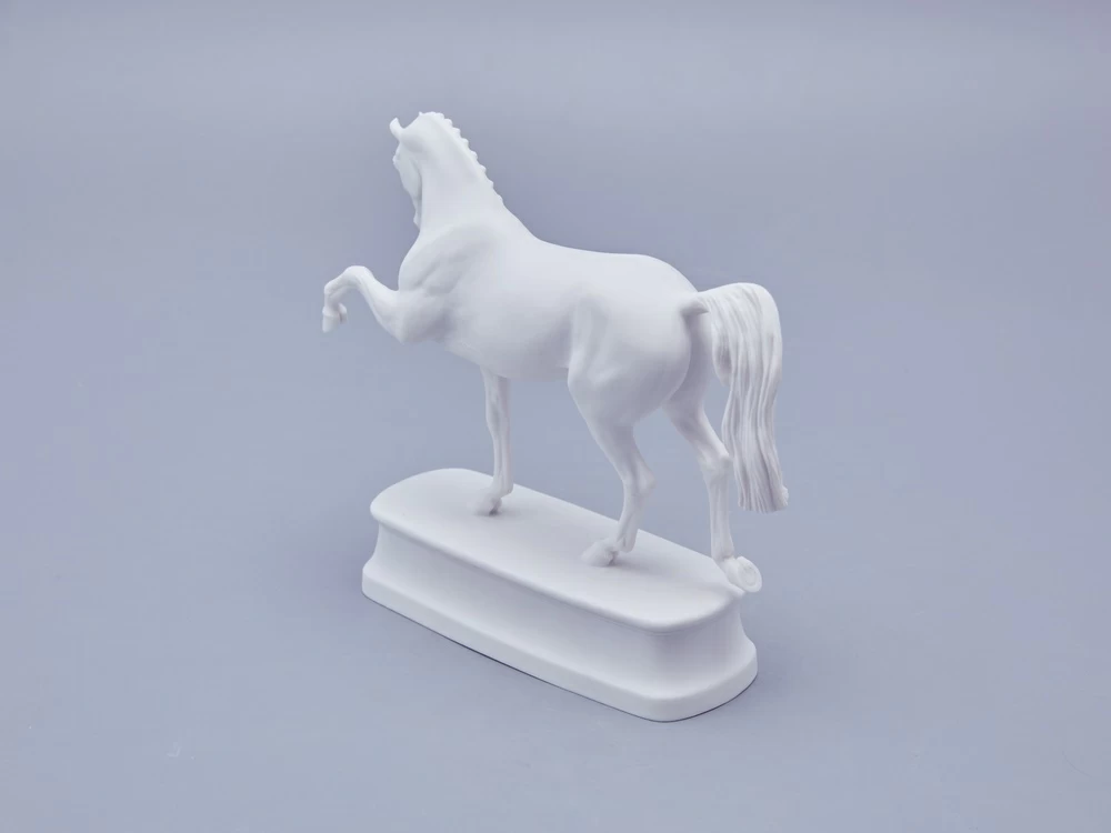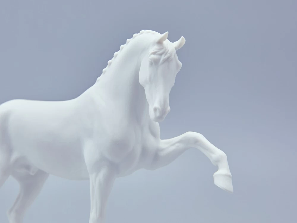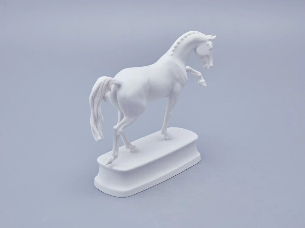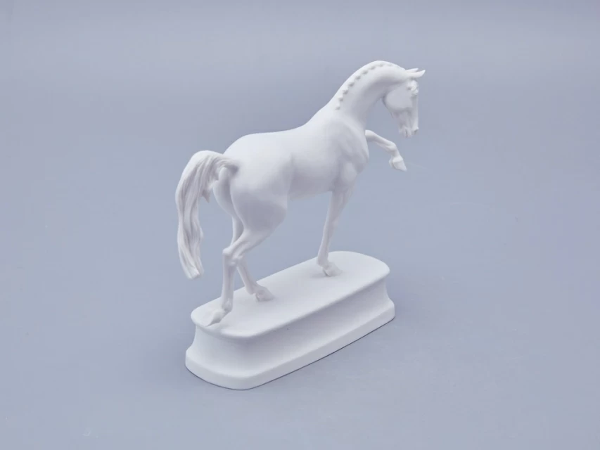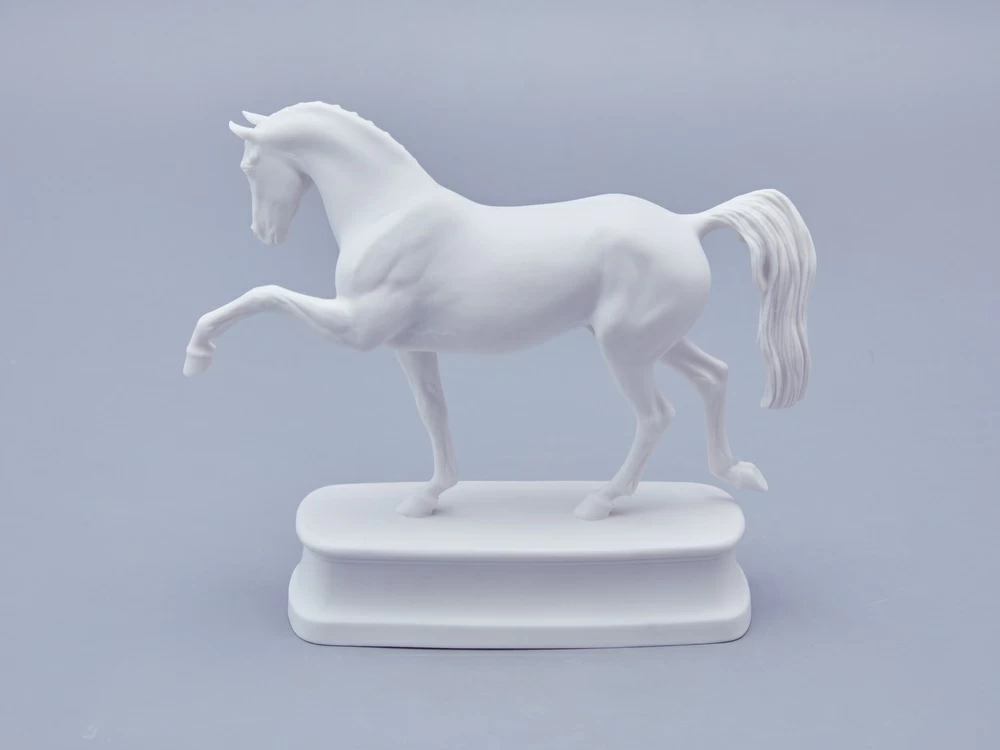 Автор произведения продолжает в этой серии традиции создания высокохудожественной анималистической скульптуры из фарфора, демонстрируя выдающееся мастерство и внимание к деталям. Изящная фарфоровая лошадь выполнена с невероятной точностью: белоснежная фигура обладает тончайшей прорисовкой, где видна каждая складка кожи, вздувшаяся в движении вена и напряженная мышца. Складывается ощущение, что животное живое и вот-вот сойдет со своего изящного постамента.