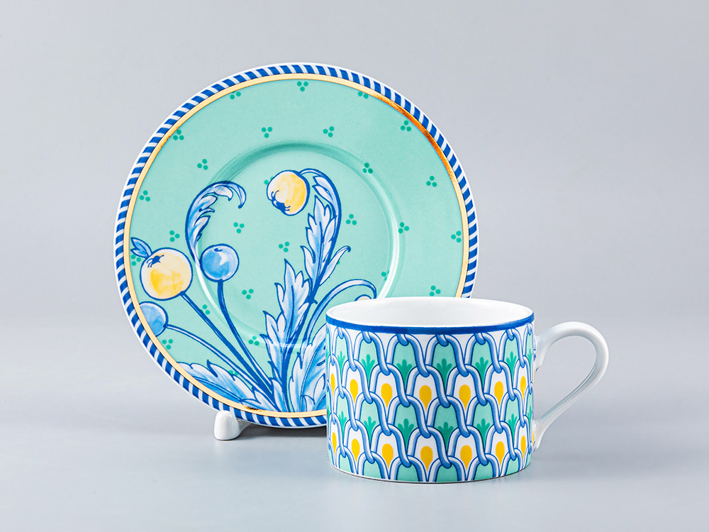Насыщенный декор коллекции, созданной в коллаборации с известной актрисой и телеведущей Юлией Высоцкой, демонстрирует прямое сходство со средиземноморской майоликой – так называют керамические изделия, которые сперва покрывают глазурью, а потом расписывают и обжигают. Растительные и геометрические орнаменты, отображенные на предметах серии, уникальны, каждое изделие обладает особым рисунком, что позволяет комбинировать изделия и создавать уникальную сервировку на каждый день.