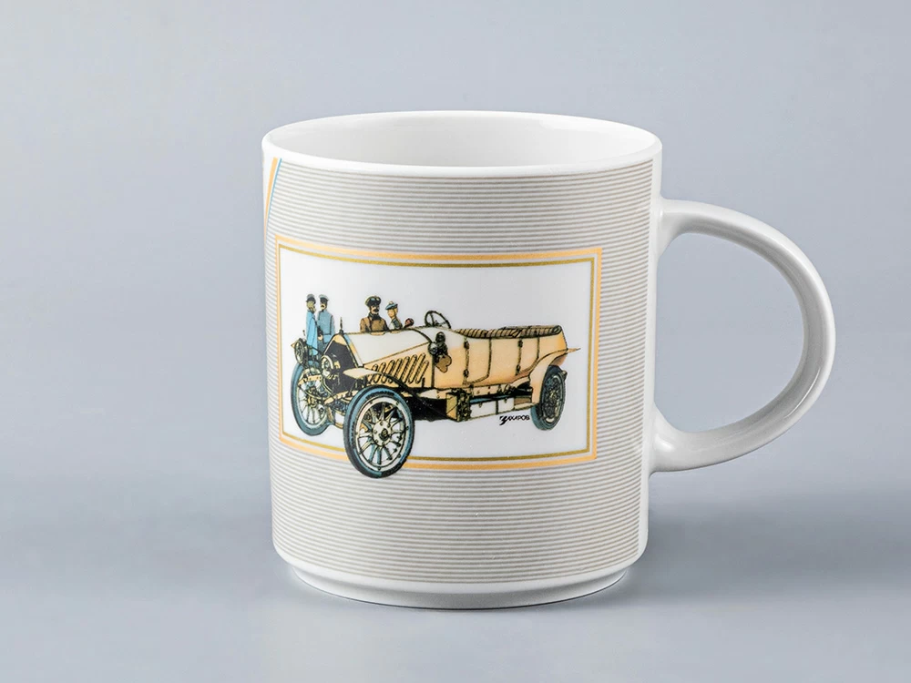 Дизайн кружек выполнен по иллюстрациям советского и российского художника, инженера и дизайнера Александра Захарова. На кружках изображены модели отечественных автомобилей начала XX века: