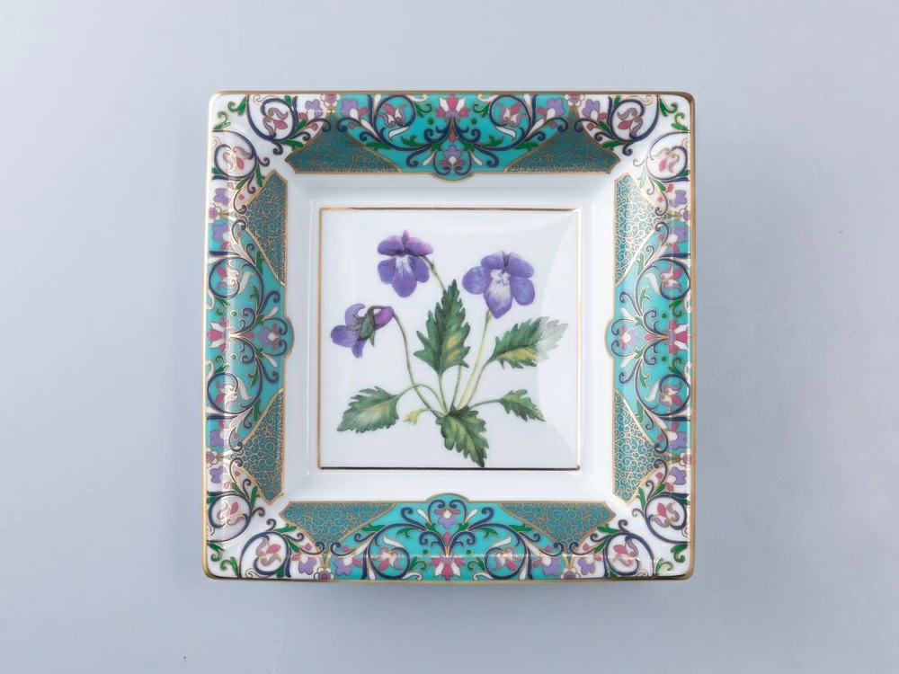 Редкое растение под названием «фиалка надрезанная» можно встретить в дальних уголках нашей страны: в южной Сибири и на Дальнем востоке. Интересный факт: несмотря на то, что этот цветок был известен в Европе с древности, в настоящее время его можно встретить только на территории России. Подставка для мелочей (вид-пош) с фиалкой вошла в коллекцию «Цветы и ягоды России» от художника Ольги Будашовой. В своих работах она зачастую использует цветочный декор, ведь он остается вне времени. Кроме того, творения художника очень созвучны стилю модерн. Используя растительные мотивы, Ольга Будашова создает предметы, которые сочетают в себе искусство и практичность. Композиция на фарфоре, выполненная в эстетике винтажных ботанических иллюстраций, дополнена орнаментальным узором – авторским размышлением на тему национальной вышивки. Такой элегантный предмет с прекрасной фиалкой – изящный аксессуар, который станет прекрасным дополнением интерьера, расположившись на туалетном столике, тумбе, комоде или даже рабочем столе. Благодаря функциональности вид-поша в нем можно хранить ювелирные украшения и различные аксессуары небольшого размера, часы, запонки и другие важные и ценные мелочи. Вид-пош в подарочной упаковке, специально разработанной для этой коллекции, станет отличным подарком для друзей и близких, а также для всех поклонников цветочной темы. |
