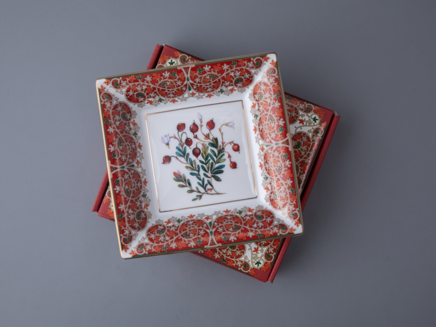 Подставка для мелочей в подарочной упаковке форма Квадратная рисунок Клюква заповедная, арт. 81.34283.00.1