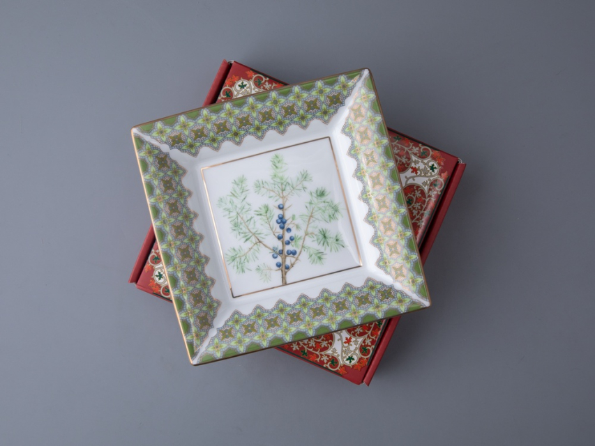 Подставка для мелочей в подарочной упаковке форма Квадратная рисунок Можжевельник ароматный, арт 81.33956.00.1