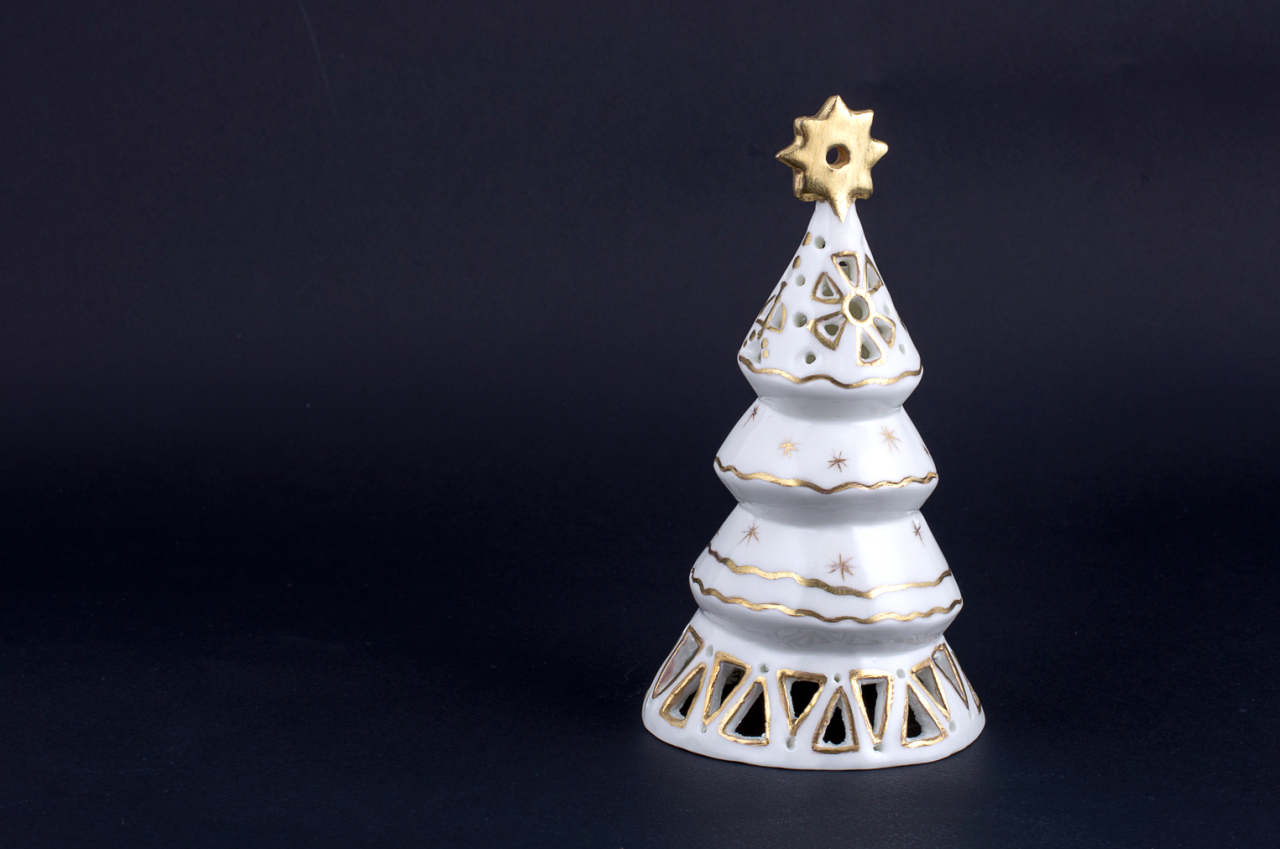 Елочка изготовлена из костяного фарфора на Императорском фарфоровом заводе.