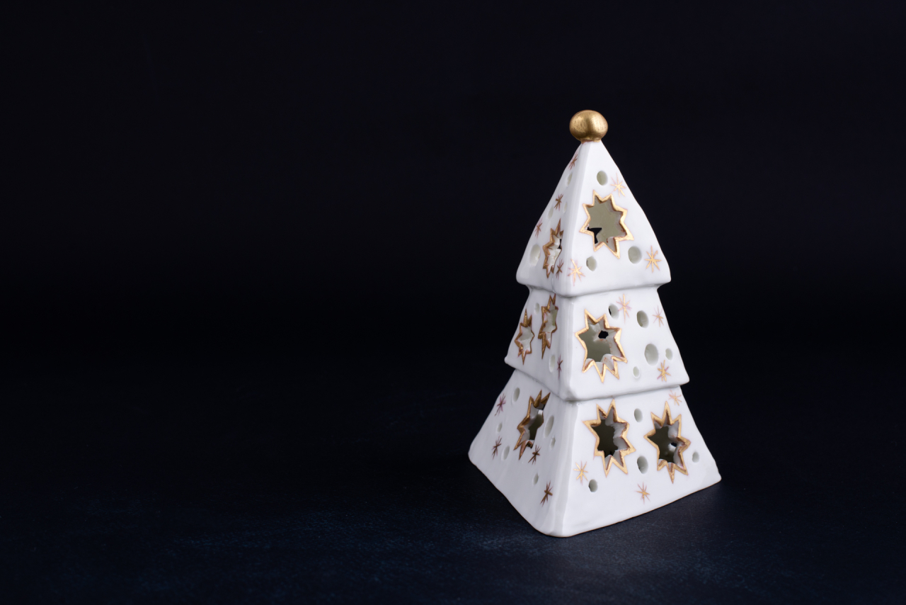 Елочка изготовлена из костяного фарфора на Императорском фарфоровом заводе.