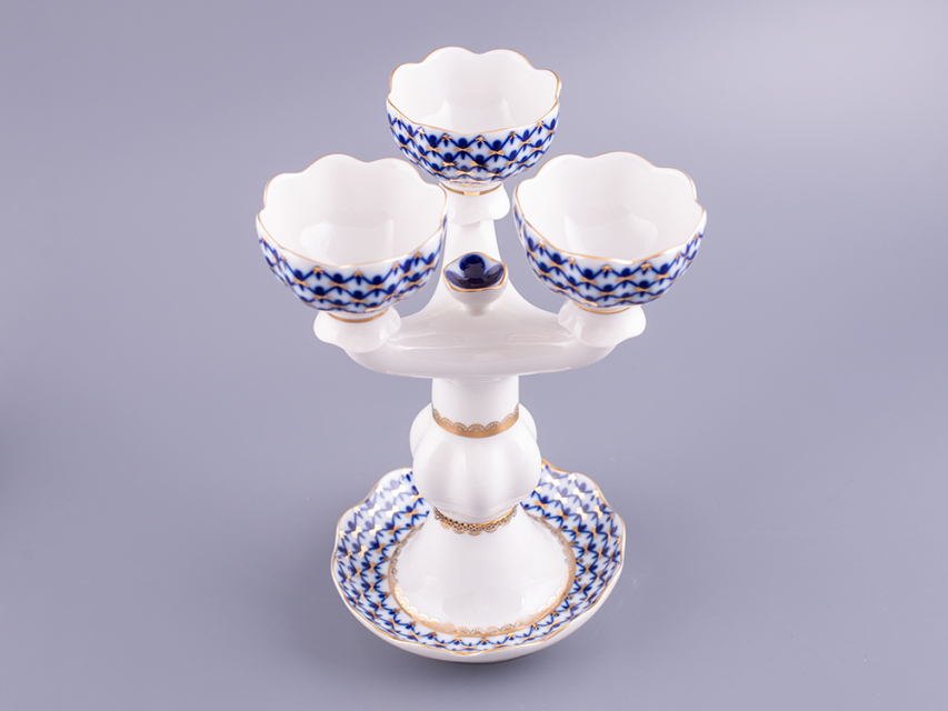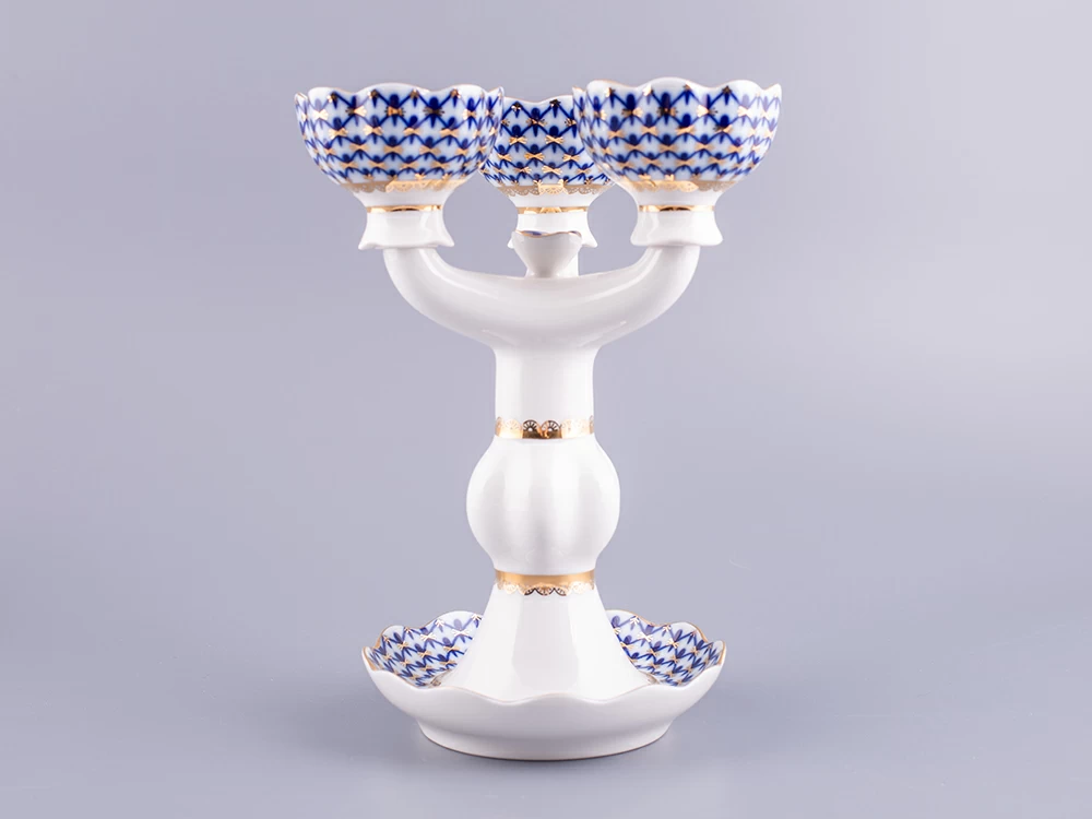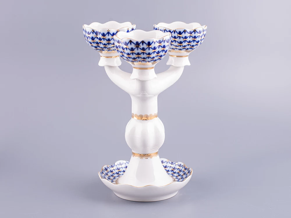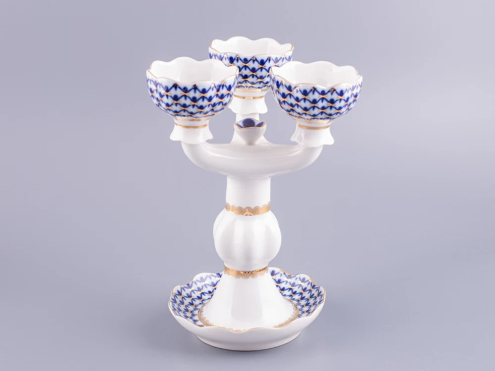 Подсвечник рис. Кобальтовая сетка изготовлен на Императорском фарфоровом заводе из твердого фарфора с элементами ручной росписи. Автор рисунка - Яцкевич А.А. Высота изделия - 22 см.