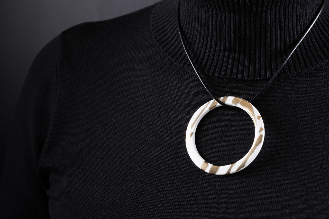 Авторская подвеска от Юлии Жуковой — стильное изделие, которое выделяется своей уникальностью. Ее можно носить как глянцевой стороной, так и матовой, украшенной изящным рельефом.