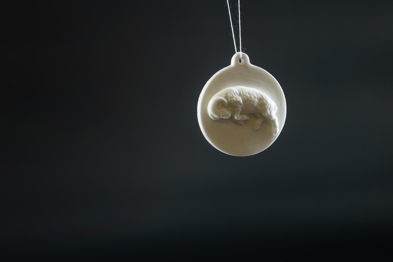 Авторская подвеска выполнена из костяного фарфора на Императорском фарфоровом заводе. Предмет входит в серию работ Знаки Зодиака