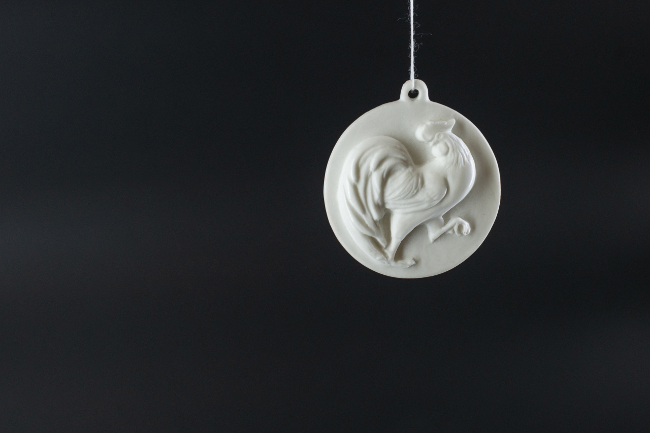 Авторская подвеска выполнена из костяного фарфора на Императорском фарфоровом заводе. Предмет входит в серию работ Знаки Зодиака