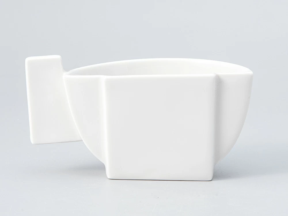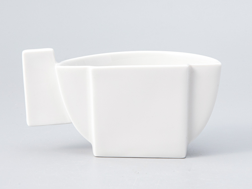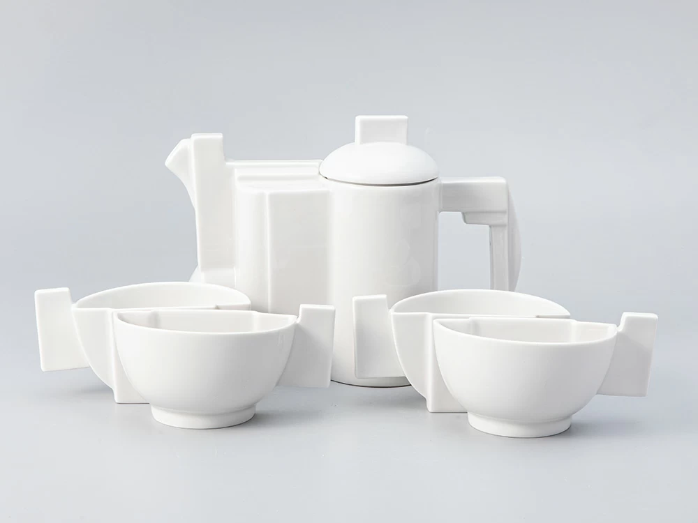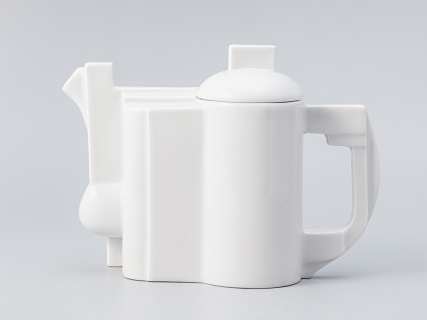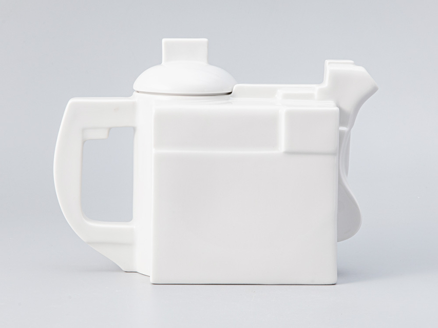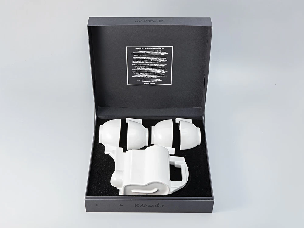 Казимир Малевич – основоположник «супрематизма» – видел свою задачу в создании художественных форм, являющихся прообразами технических организмов будущего. Чайник, напоминающий сложную геометрическую систему, был одной из наиболее убедительных работ художника в фарфоре. Теория супрематизма с его лаконичной новой эстетикой нашла практический выход на Государственном фарфоровом заводе, где в 1923 году была выпущена партия супрематического фарфора, включая знаменитый чайник и получашку.