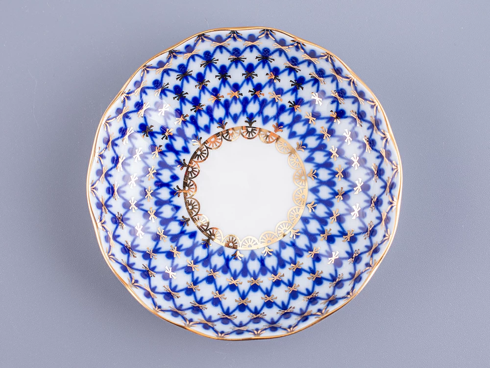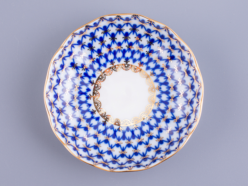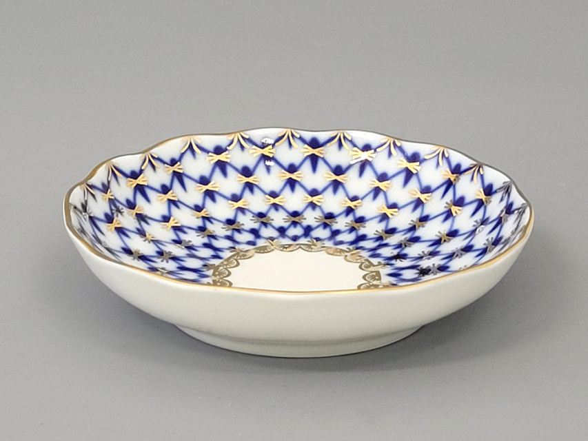 Розетка для варенья рис. Кобальтовая сетка изготовлена на Императорском фарфоровом заводе из твердого фарфора с элементами ручной росписи. Автор рисунка - Яцкевич А.А. Диаметр изделия - 98 мм.