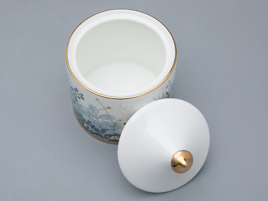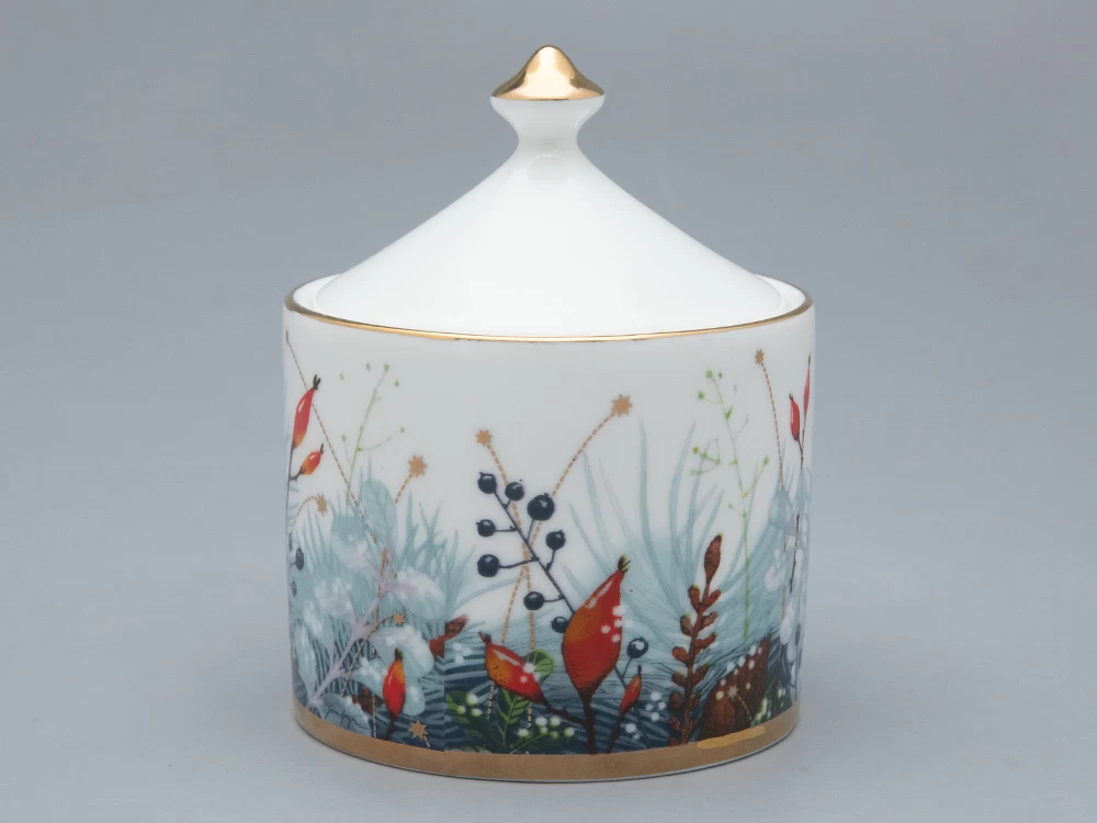 «Календа» – это изысканное сочетание традиций и современных трендов. При создании композиции автор вдохновлялась традиционным праздничным декором – рождественским венком, а также обратилась к художественному наследию Императорского фарфорового завода, а именно, композициям одного из ведущих живописцев по фарфору XIX века Федора Красовского. Чайник из этой коллекции можно использовать как самостоятельно, так и комбинировать с другими сериями. Роскошная хвоя венка созвучна коллекции «Азур», а алые ленты – «Скарлетт». Рисунок нанесен по особой технологии с использованием рельефной краски. Свое оригинальное название коллекция получила благодаря слову “calendae” – первый день месяца на латыни. В старославянском это слово пришло как «коляда», и чаще всего употреблялось как народное название рождественского Сочельника.