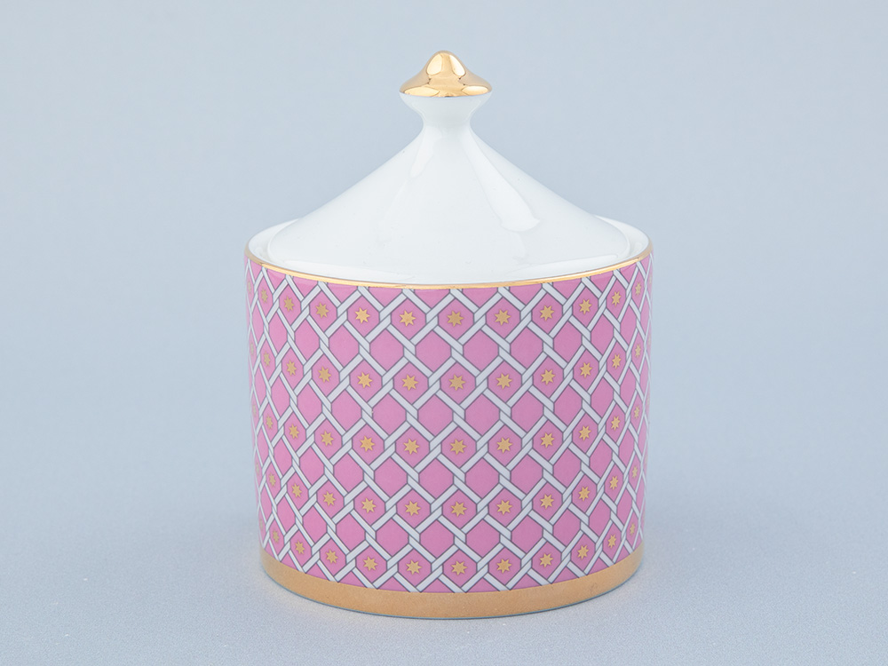Сахарница входит в коллекцию «Астра». Нежный, благородный оттенок розового цвета, выбранный для «Астры», напоминает удивительный бриллиант «Розовая звезда». Этот драгоценный камень считается одним из самых редких и дорогих в мире. Геометрический паттерн, созданный художником Юлией Чистяковой, является оммажем на великое наследие Императорского фарфорового завода, включая Собственный сервиз Елизаветы Петровны середины XVIII века и легендарную «Кобальтовую сетку» Анны Яцкевич. Звезды, изображенные на фарфоре, предопределили название коллекции, ведь с греческого «астра» переводится как «звезда».