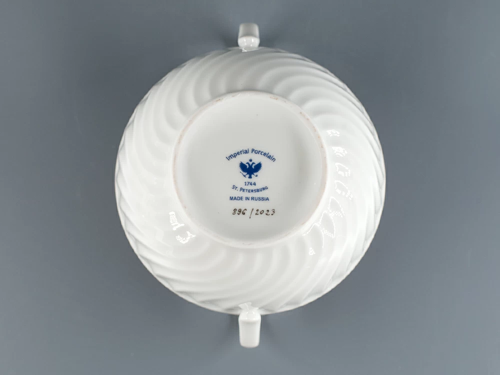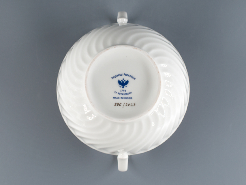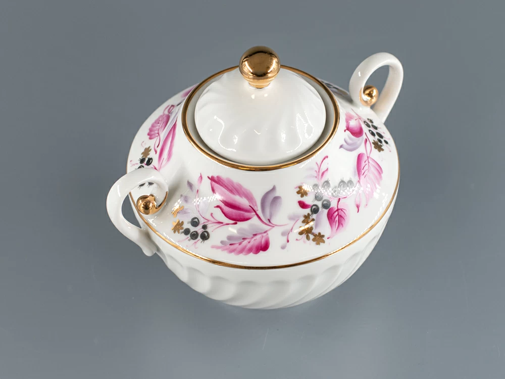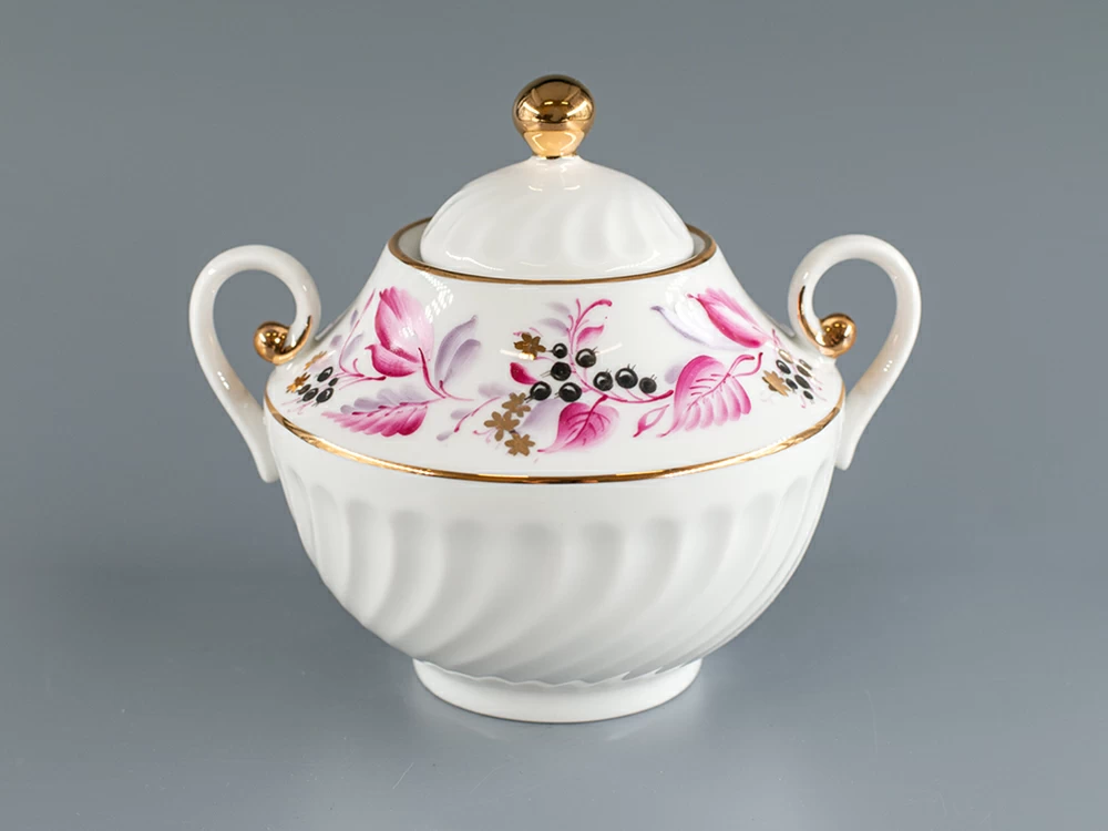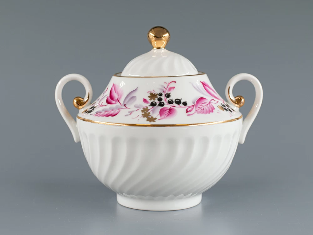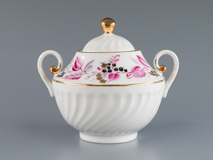 Сахарница на форме Витая, рисунок Лесная ягода. Изготовлена на Императорском фарфоровом заводе из твердого фарфора. Ручная роспись