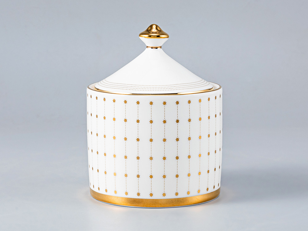 Сахарница «Азур» отличаются изысканным лаконичным декором, подчеркивающим белизну и воздушность материала. Строгую геометрию, задающую основной ритм, автор смягчает акцентом в виде изображения рождественской звезды.