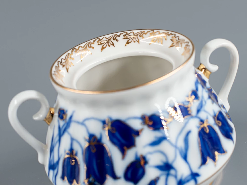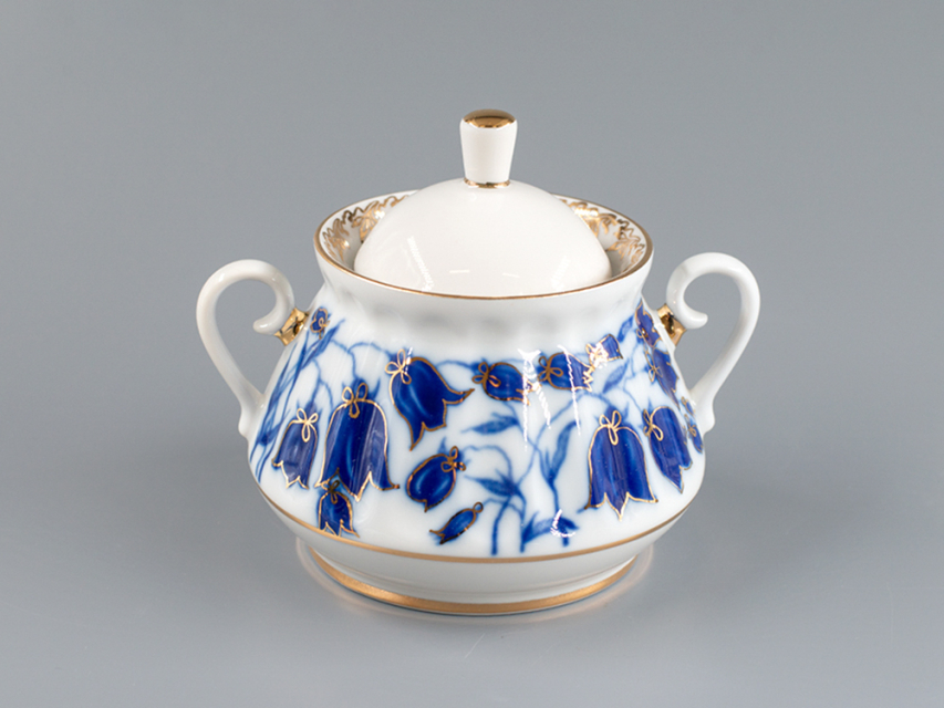 Сахарница рис. Колокольчики изготовлена на Императорском фарфоровом заводе из твердого фарфора с элементами ручной росписи. Автор рисунка - Славина Н.П. Объем изделия - 300 мл.
