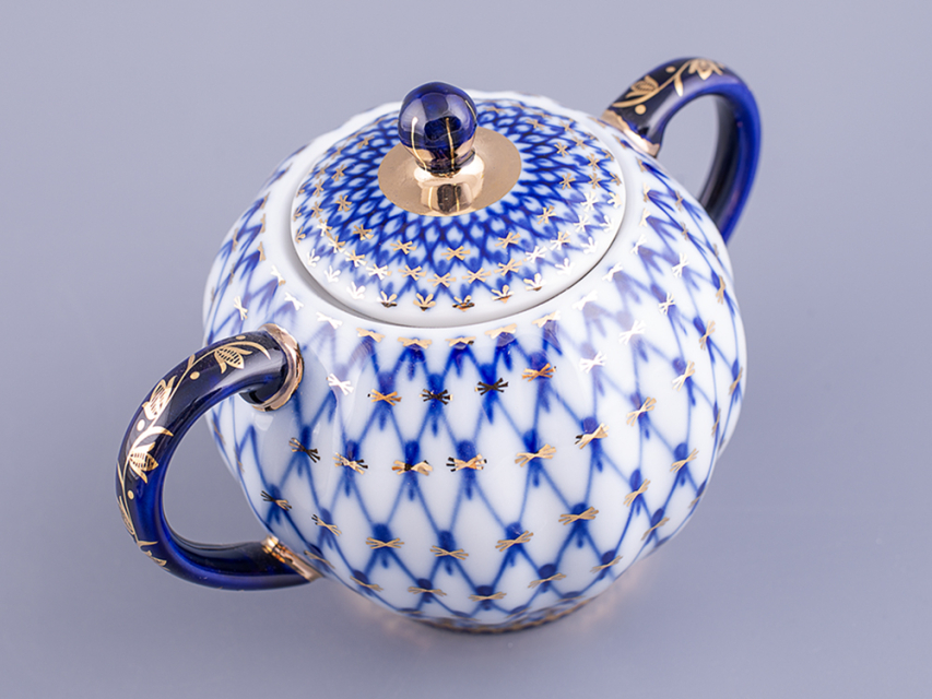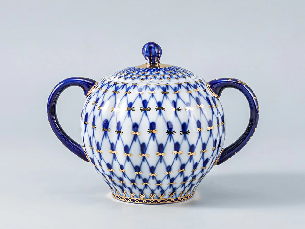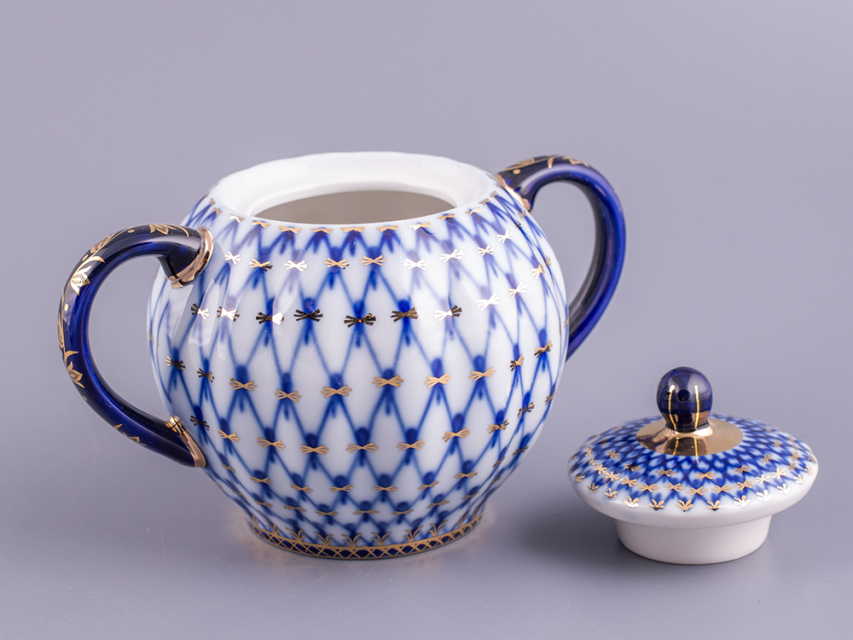 Сахарница рисунок Кобальтовая сетка изготовлена на Императорском фарфоровом заводе из твердого фарфора с применением только ручной росписи. Автор рисунка - Яцкевич А.А. Объем изделия - 450 мл.