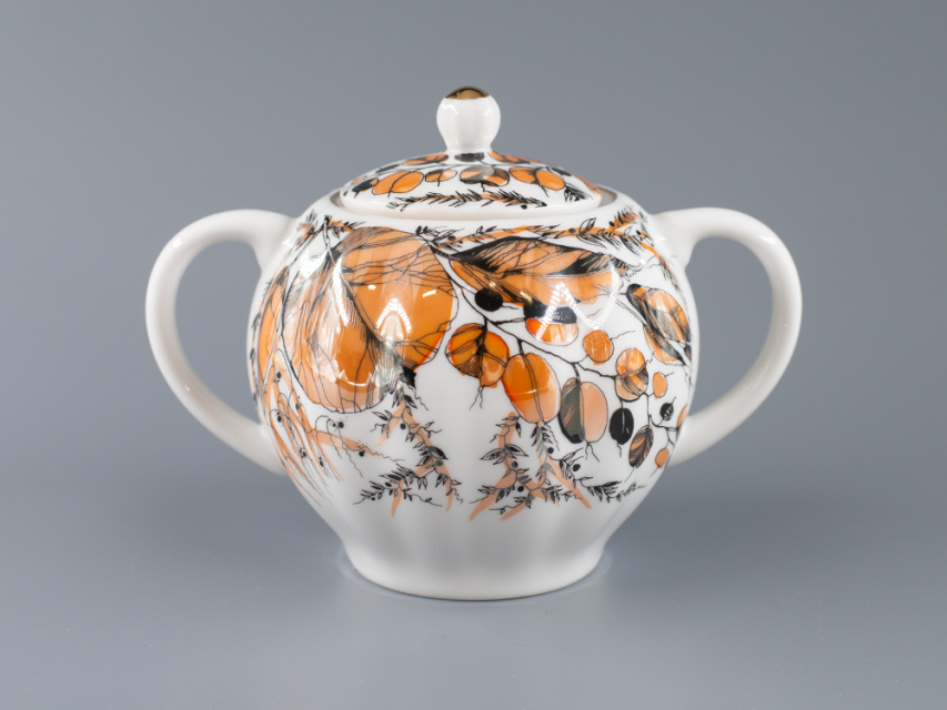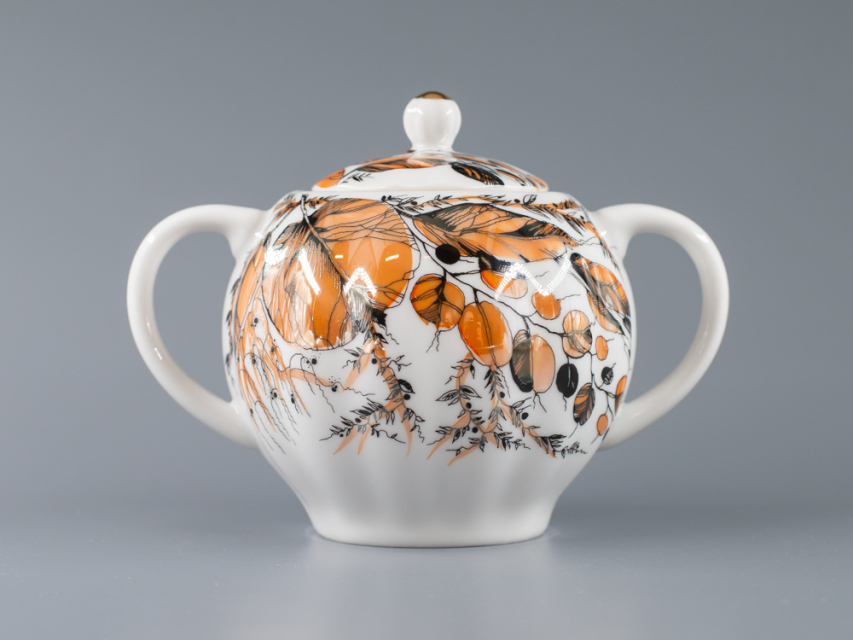 Сахарница рис. Мой сад изготовлена на Императорском фарфоровом заводе из твердого фарфора с элементами ручной росписи. Автор рисунка - Славина Н.П. Объем изделия - 450 мл.