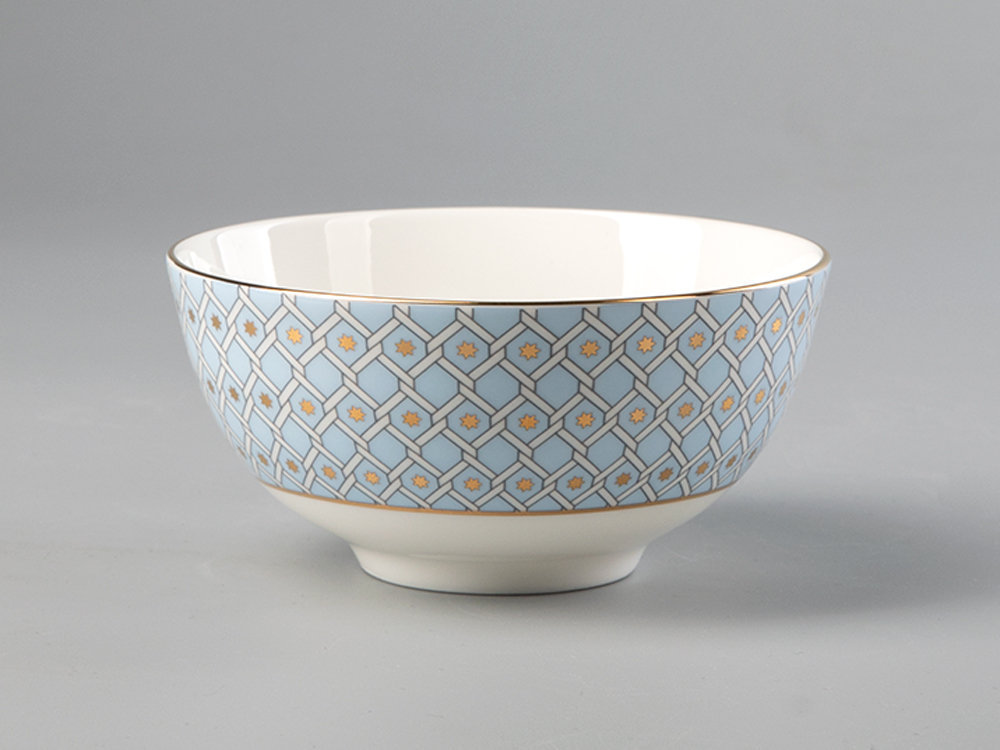 Салатник «Азур» - продолжение одноименной популярной коллекции, новинка 2022 года, выполнен в традиционном для коллекции декоре, представляющим собой современную вариацию на тему знаменитой росписи Императорского фарфорового завода «Кобальтовая сетка». Ее прототипом в свою очередь, является Собственный сервиз Елизаветы Петровны середины XVIII века. Строгий геометрический декор, задающий основной ритм, художник Юлия Чистякова смягчает мягкими заливками цвета и золотыми акцентами. Всего в коллекции представлены три салатника разного объема.