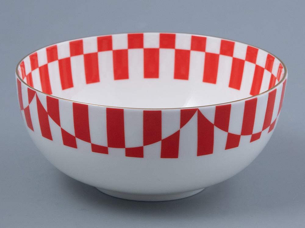 Салатник с красными полосами будет эффектно смотреться в моноцветовой сервировке, а также хорошо сочетаются с другими цветами коллекции «Да и нет».