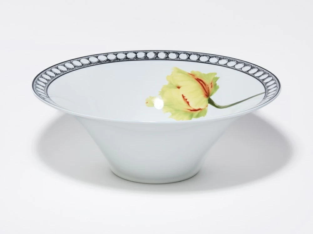Большой салатник из коллекции «Волшебный сад» – это универсальный предмет сервировки, который идеально подходит для подачи разнообразных блюд, включая холодные закуски и салаты для всей компании, а также может использоваться для горячих блюд или десертов. Изделие создано Императорским фарфоровым заводом в сотрудничестве с дизайнером моды Сергеем Сысоевым и представляет собой гармоничное сочетание функциональности и искусства.