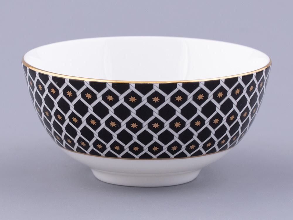 Салатник «Неро» – стильный элемент вашей сервировки. С внешней стороны салатник украшает замысловатый орнамент на черном фоне. Черный цвет, одновременно лаконичный и выразительный, является синонимом элегантности и утонченного вкуса. «Неро» демонстрирует восхитительный диалог черного цвета с белоснежным фарфором. Благодаря такому контрасту черный кажется менее консервативным, а костяной фарфор приобретает большую воздушность.