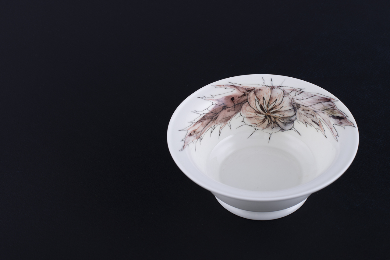 Растительная тематика – одна из любимых в творчестве Татьяны Чапургиной. Салатник вошел в серию «Русские обочины», которую художник посвятила разнообразию отечественной флоры Неприхотливые растения, среди которых – степная колючка и репейник, растущие по обочинам и на пустырях, стали главными героями серии.