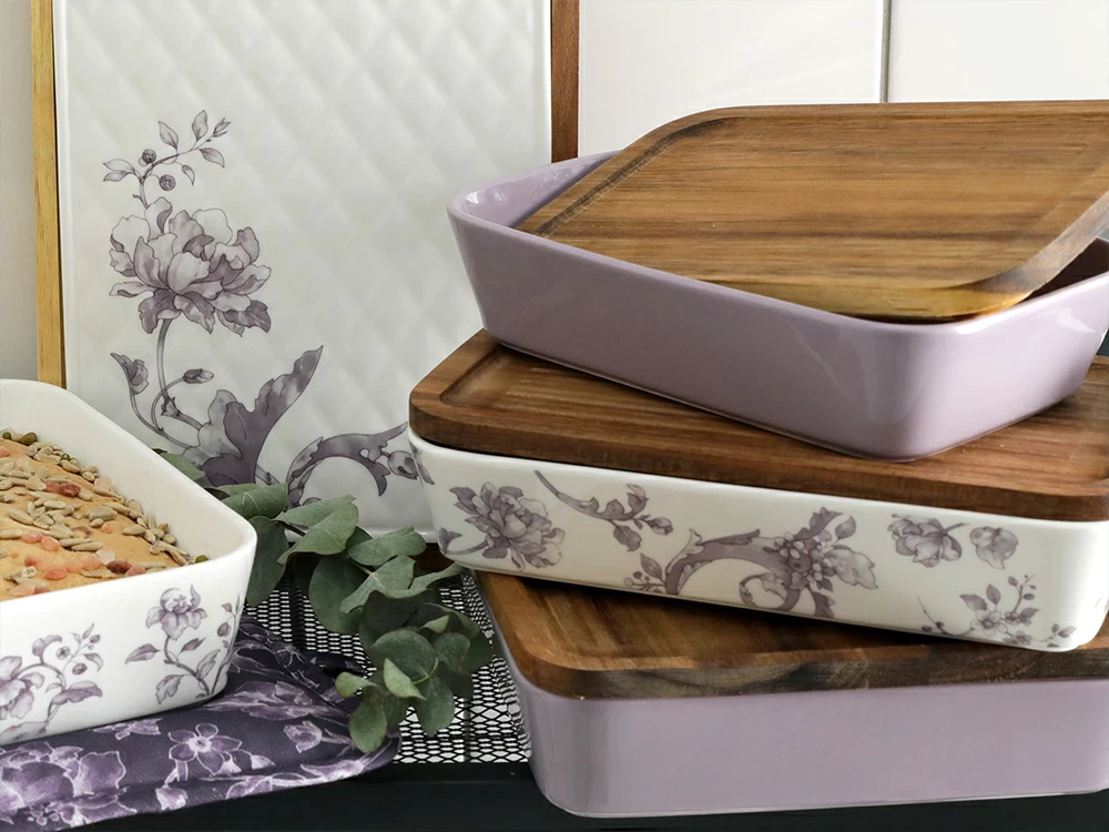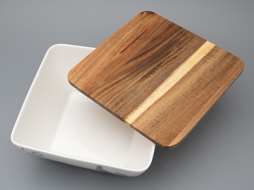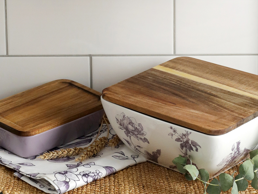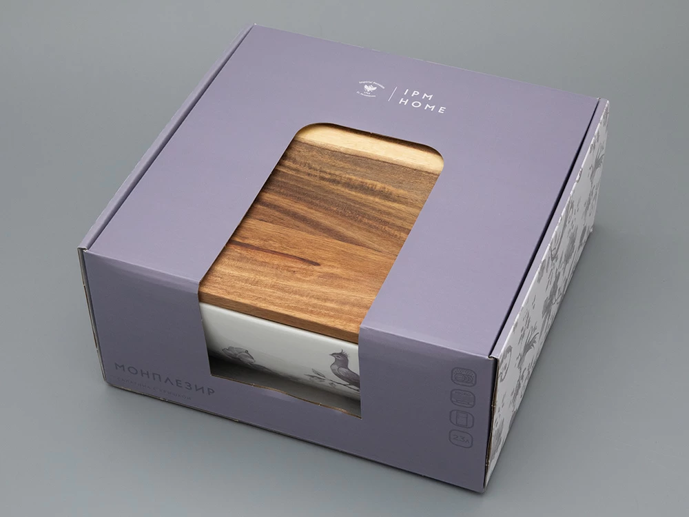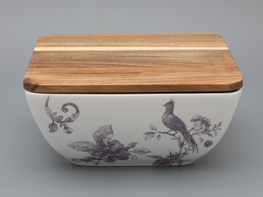 Салатник большого размера с деревянной крышкой форма Стандартная, рисунок Monplaisir Violet в упаковке арт 42.00063.00.1