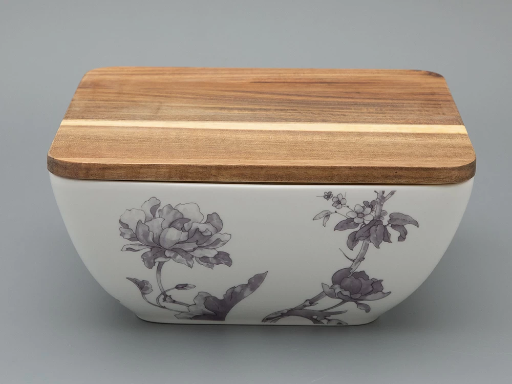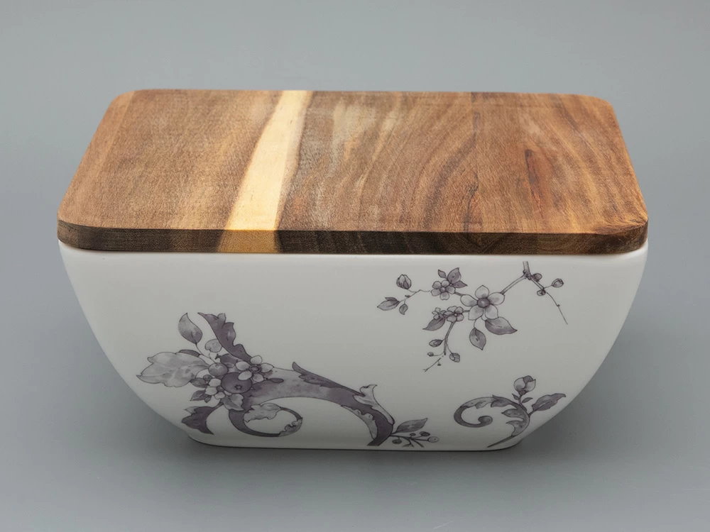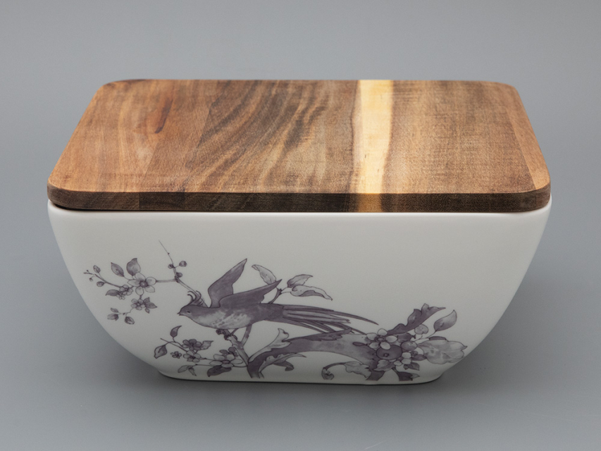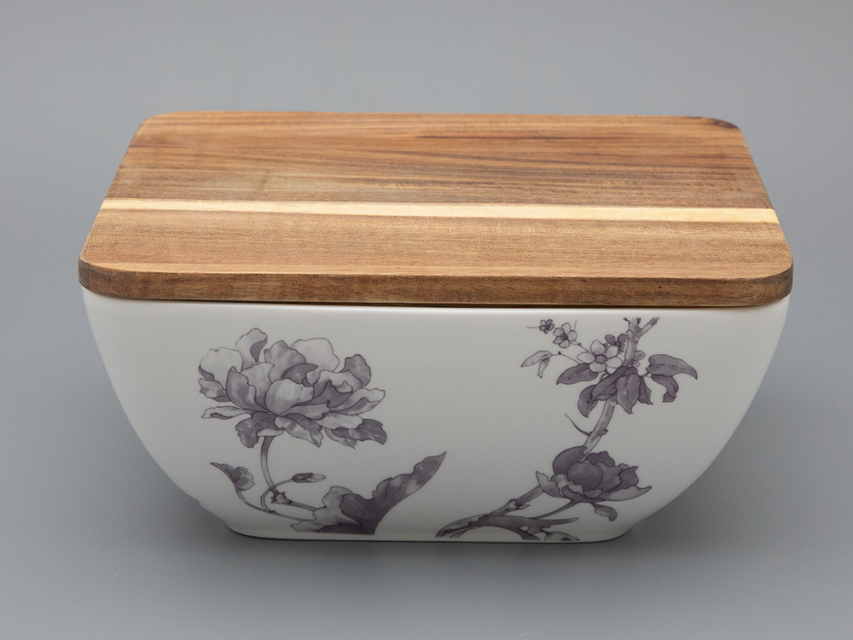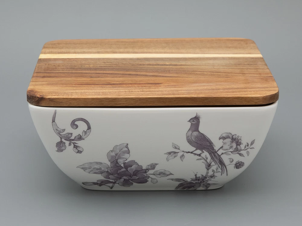 Салатник Monplaisir – элегантное дополнение сервировки стола. Салатник имеет оптимальный размер и удобную форму, что позволяет использовать его для подачи различных закусок и салатов. Деревянная крышка из дерева акации гармонично сочетается с рисунком на фарфоре, добавляет ноту уюта, а также сохранит свежесть блюда. Салатник украшен изящным рисунком в стиле шинуазри. В декоре угадываются дивные цветы и птицы.