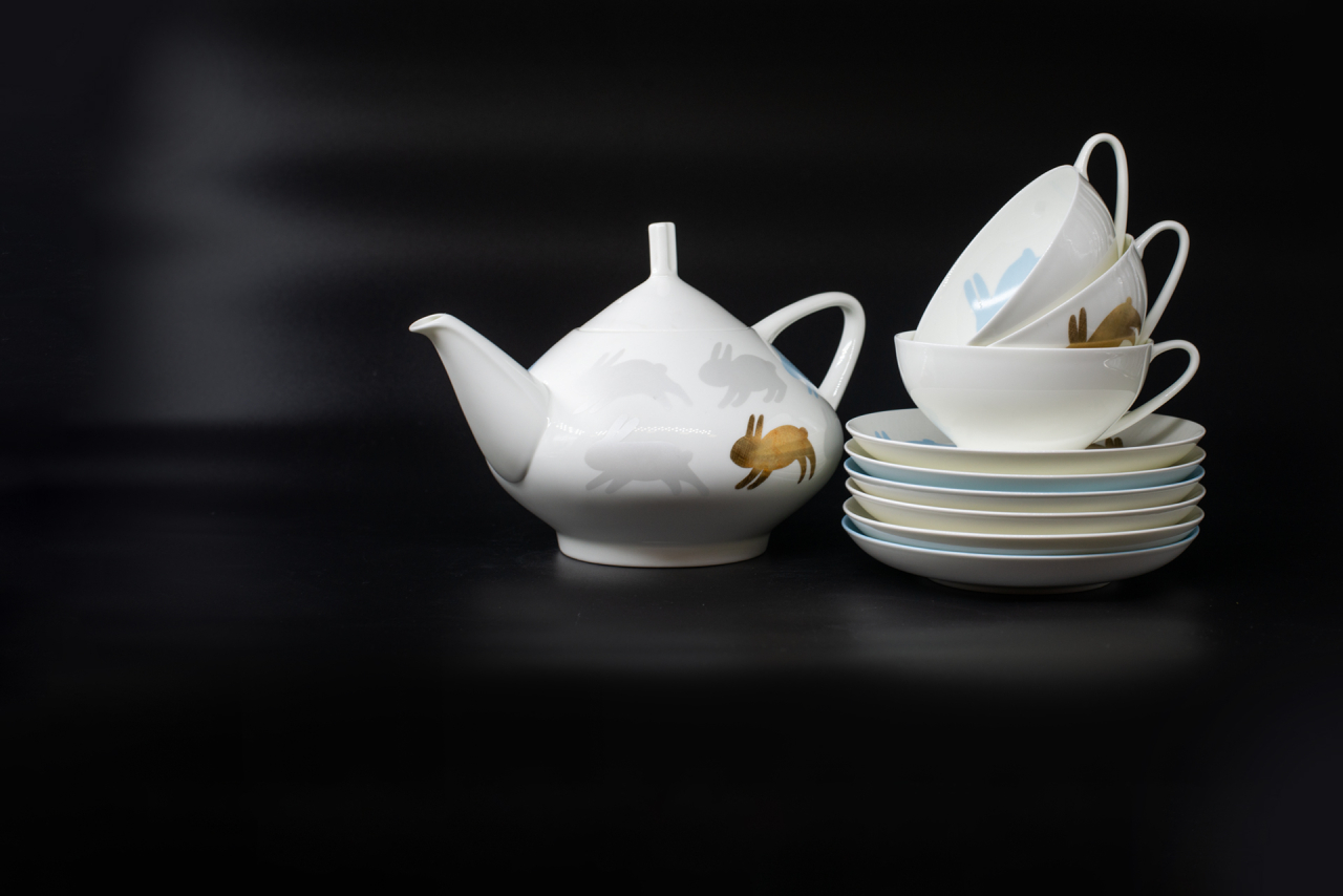Сервиз воплощает собой гармонию природы и утонченности художественного мастерства. Белоснежный фон фарфора символизирует чистоту зимнего утра, когда природа укрыта мягким снежным покровом. На этой светлой глади располагаются стилизованные изображения зайчиков. Их мягкие, плавные формы передают легкость и грациозность животных, будто застигнутых врасплох первым солнечным лучом.