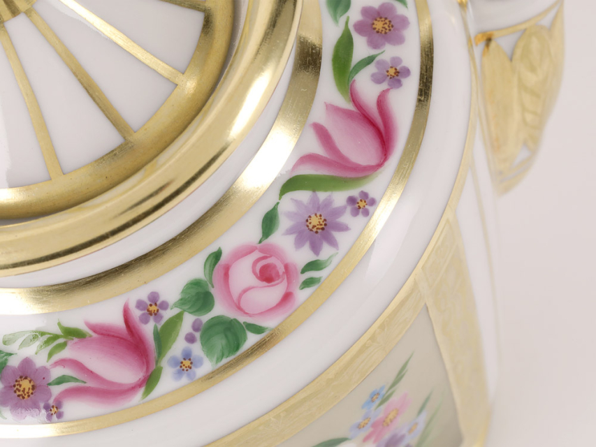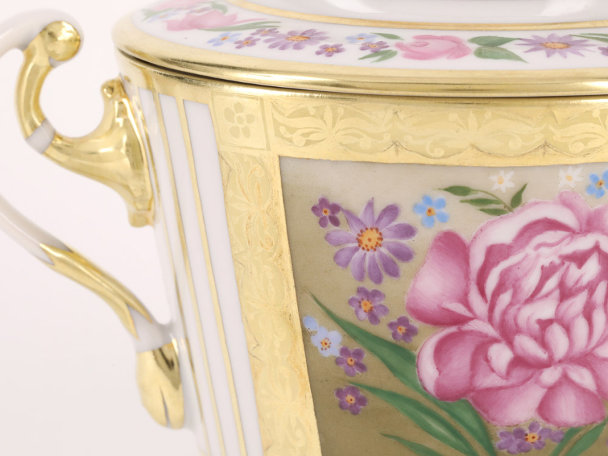 Автор росписи – Богданова С.П. – талантливейший мастер росписи по фарфору, художник Императорского фарфорового завода, проработавший на предприятии около 60 лет.