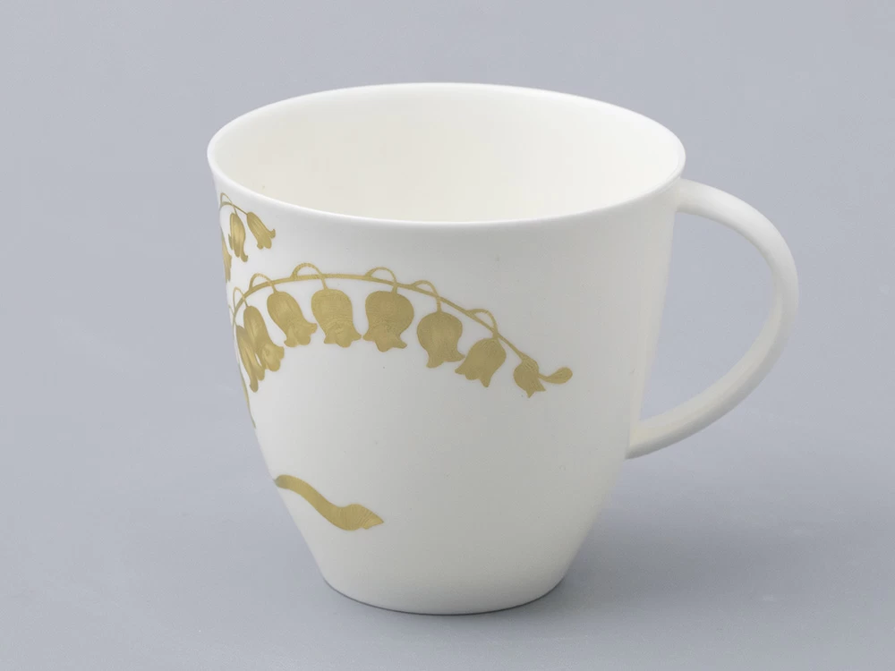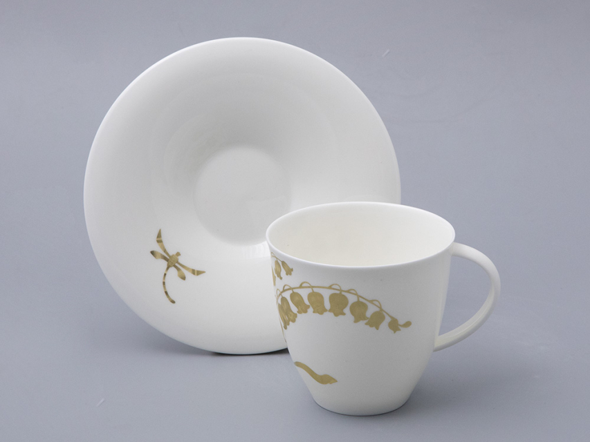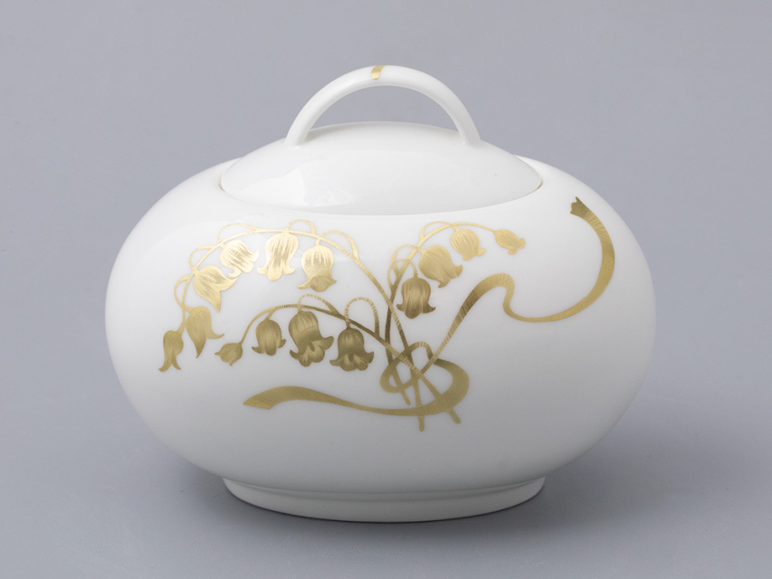 Пышную композицию с ландышами изобразила на предметах коллекции Нина Троицкая. Во многих культурах ландыш символизирует счастье, и букет из этих цветов считается замечательным подарком как для возлюбленных, так и для друзей и родных. Кроме того, ландыш пользуется большой популярностью при составлении букета невесты. В данном случает цветок означает чистоту и нежность.