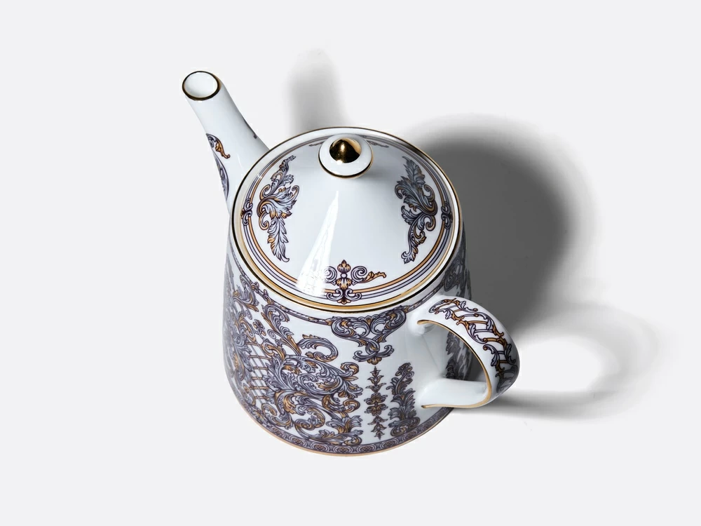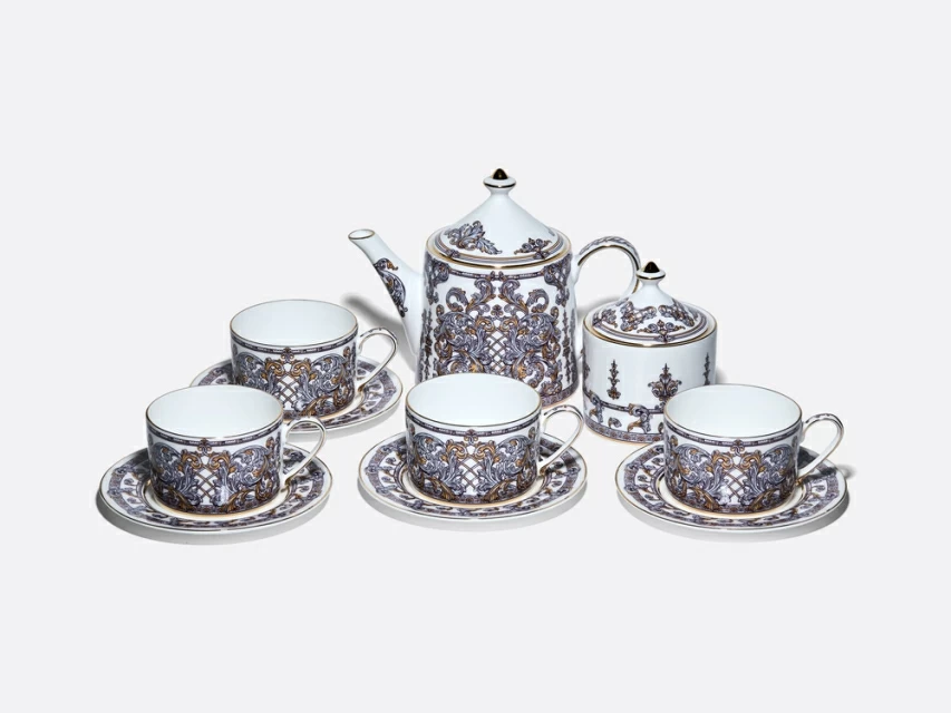 "Чайный сервиз «Барокко» из костяного фарфора от художника Светланы Козлобродовой приглашает в эпоху роскоши. Белоснежный фарфор служит идеальным холстом для сложного декора, вдохновленного стилем барокко с его торжественностью и богатством орнамента.