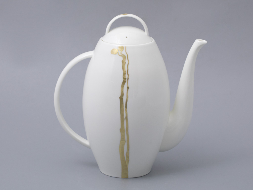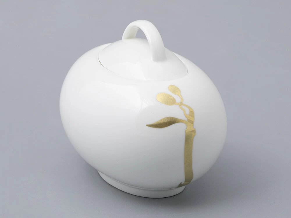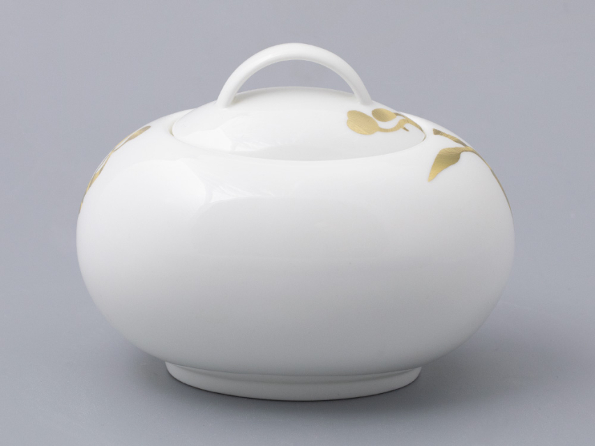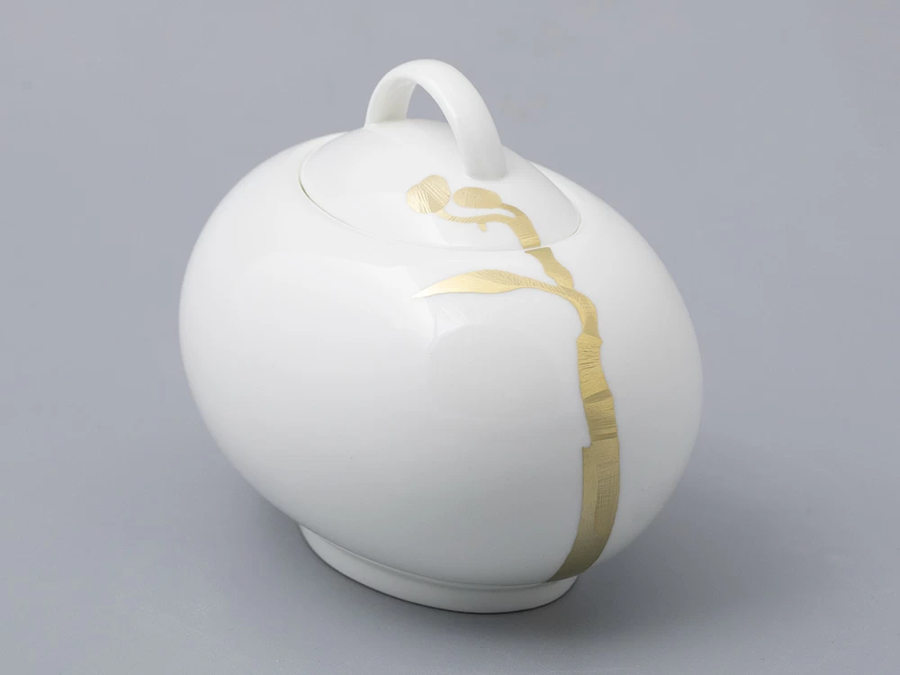 Утонченный золотой декор на костяном фарфоре, созданы Заслуженным художником РФ Ниной Троицкой. Название «Лидия» было выбрано художником неслучайно. В переводе с греческого оно означает «красивый, благородный» и завершает впечатление от композиции.
