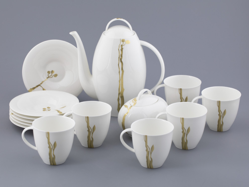 Чайный сервиз «Лидия» с утонченным золотым декором – это современная интерпретация классической элегантности и изысканности.