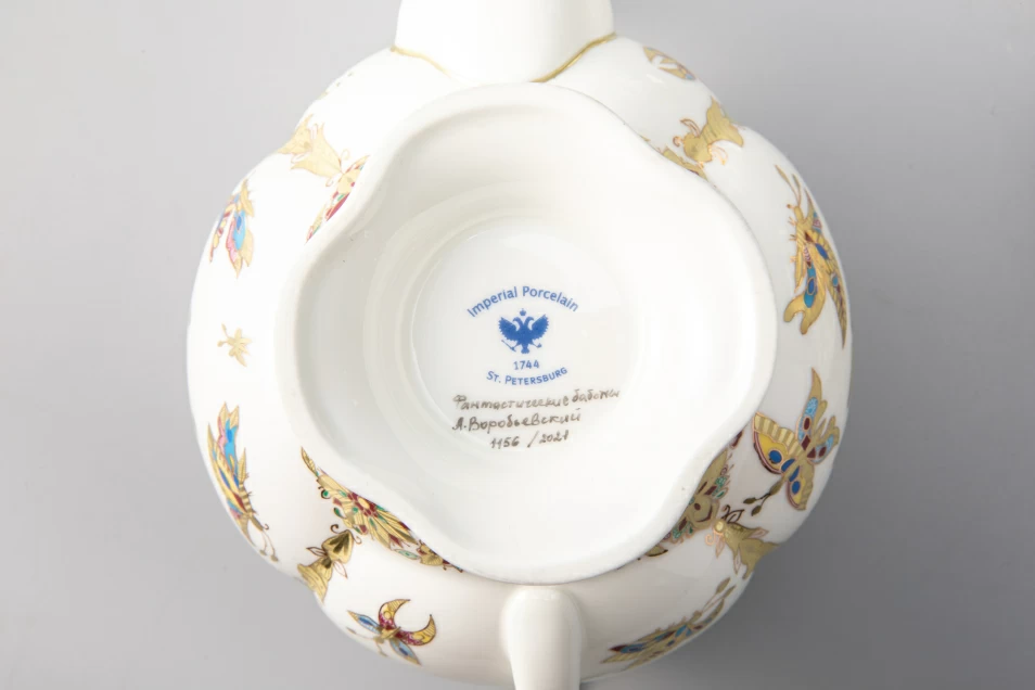 Сервиз был создан А. Носовой по мотивам рисунка народного художника России Алексея Воробьевского. Проработав с художником не одно десятилетие, она досконально изучила его творческий почерк. На создание сервиза «Фантастические бабочки» А.Носову вдохновила роспись авторской чашки А. Воробьевского. Ей мастерски удалось сохранить все тепло, сочный колорит и декоративность рисунка гениального автора.