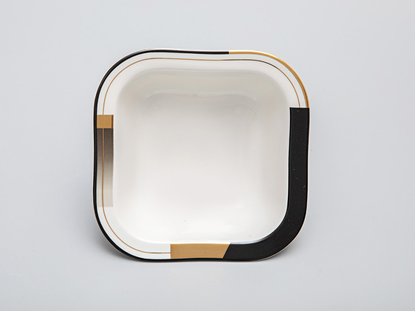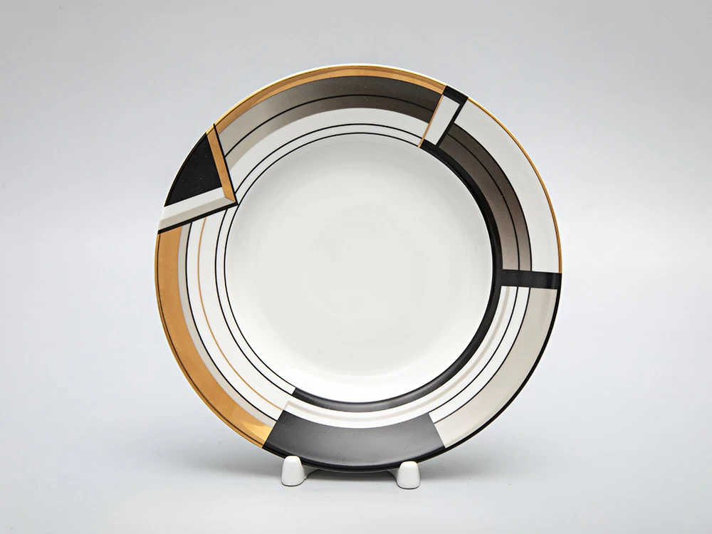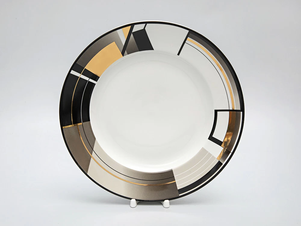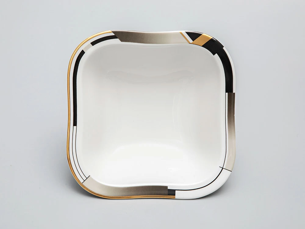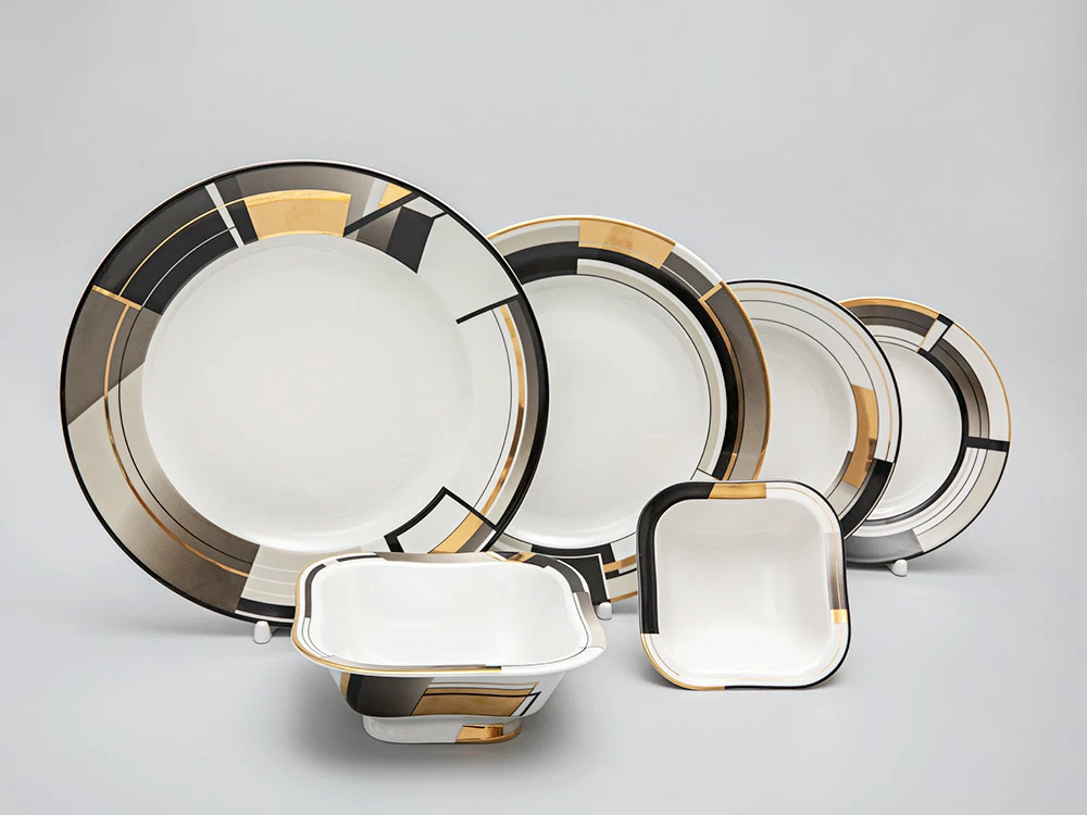 Формы «Молодежная» и «Баланс» подчеркивает рисунок, разработанный современным художником Императорского фарфорового завода Верой Бакастовой. Сочетание черного и серого цветов с золотом отсылают к любимым у последователей bauhaus материалам: коже, дереву и металлу. Линии поражают своей выверенностью, а треугольники являются логическим продолжением формы ручек чашек, чайника и сахарницы.