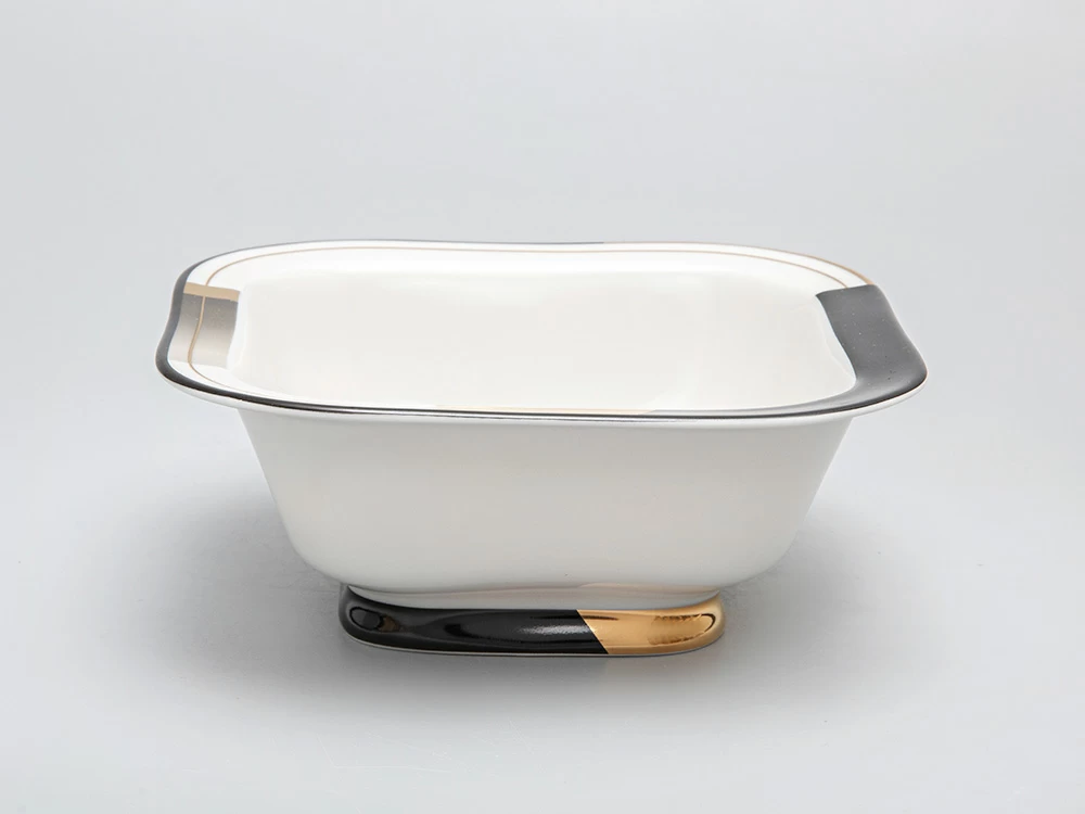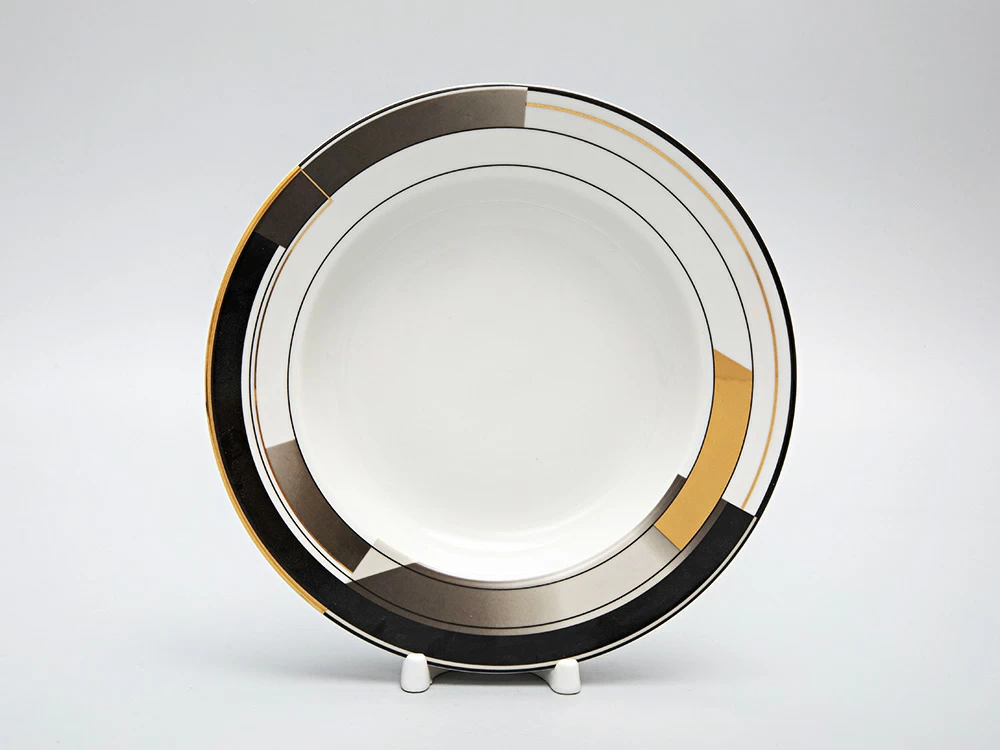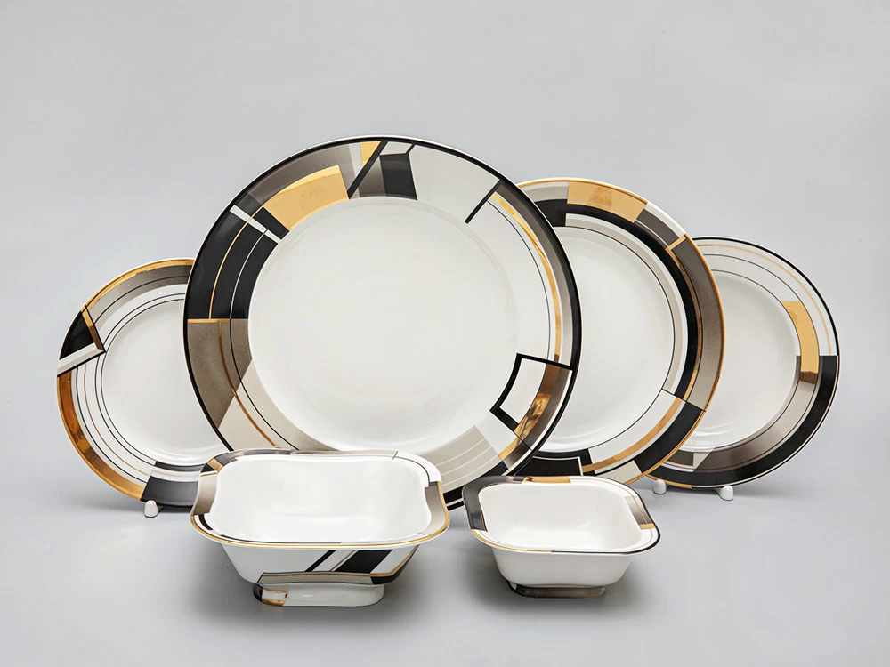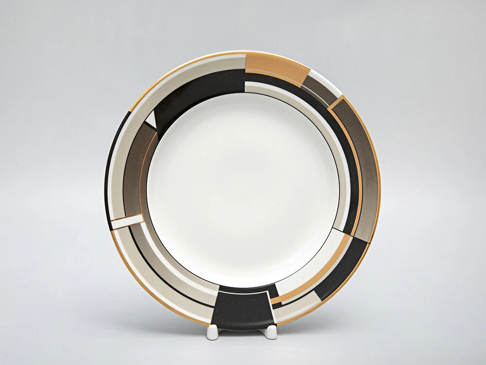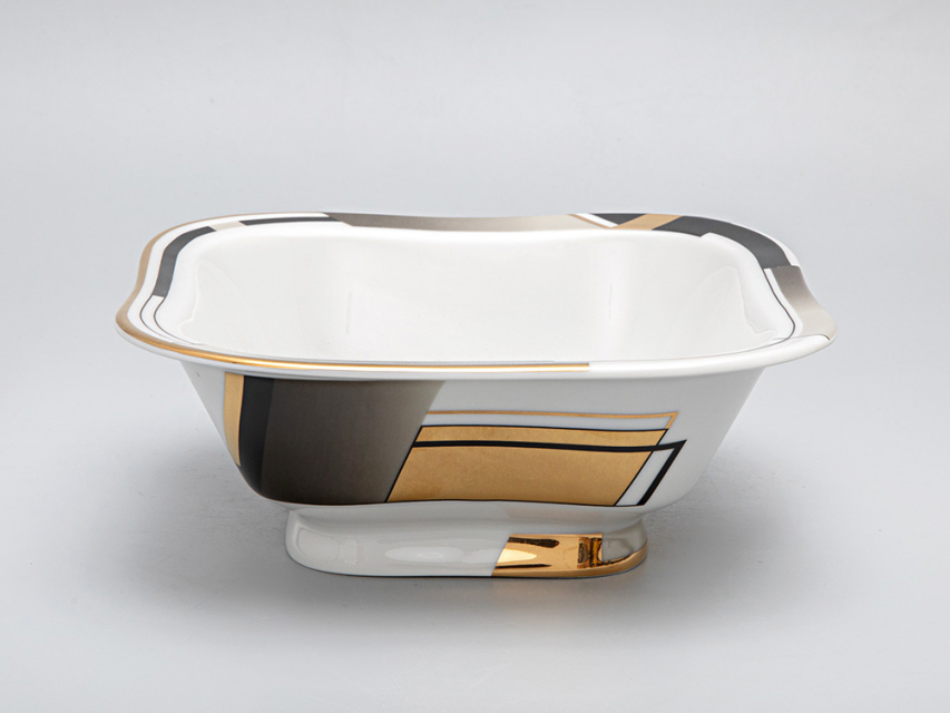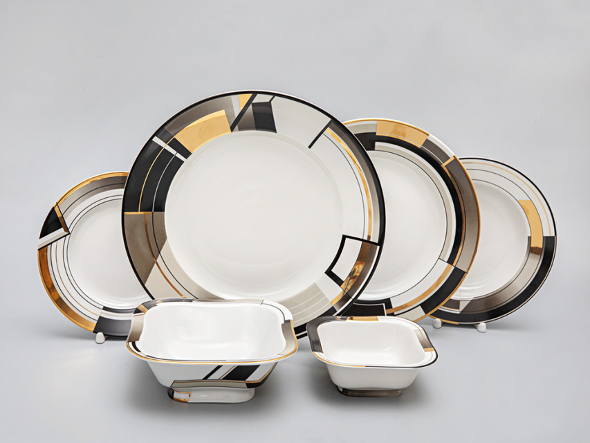 Формы «Молодежная» и «Баланс» подчеркивает рисунок, разработанный современным художником Императорского фарфорового завода Верой Бакастовой. Сочетание черного и серого цветов с золотом отсылают к любимым у последователей bauhaus материалам: коже, дереву и металлу. Линии поражают своей выверенностью, а треугольники являются логическим продолжением формы ручек чашек, чайника и сахарницы.