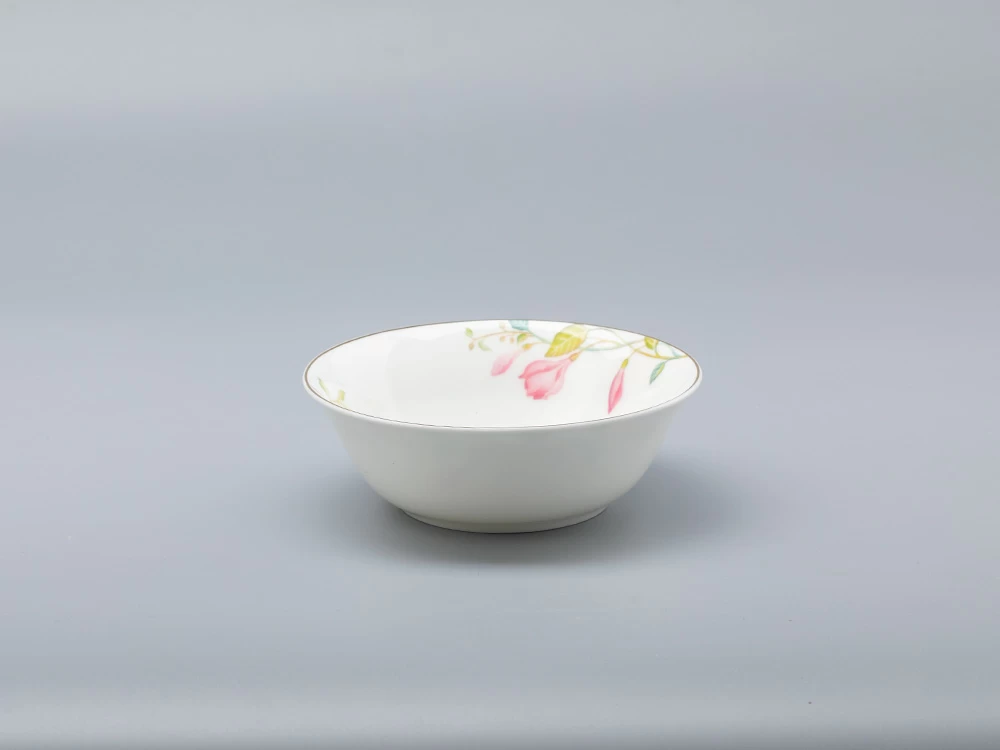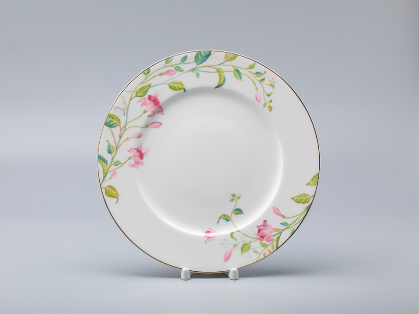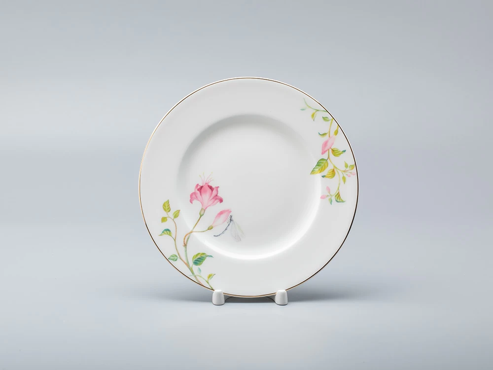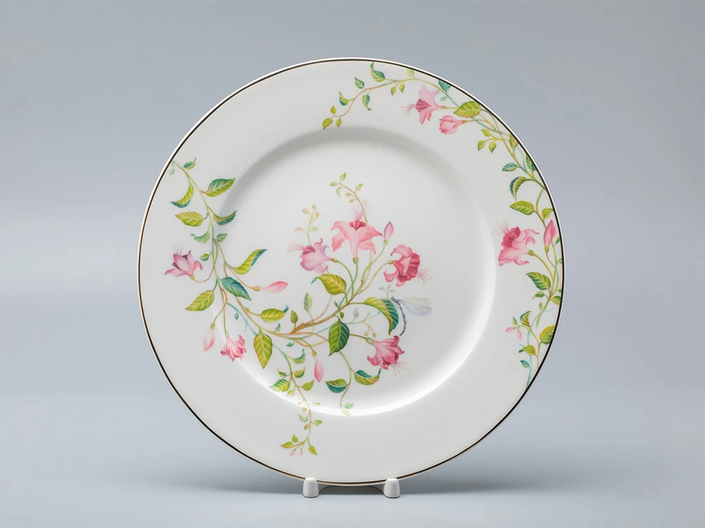 Декоративный мотив коллекции «Сад мечты» – это нежный цветок фуксии. Автор рисунка, Ольга Будашова, неспроста выбрала именно это экзотическое растение. Считается, что фуксия привлекает удачу, а также является пожеланием любви и счастья. Декор выполнен в полупрозрачных тонах и напоминает акварельную живопись. Такой рисунок замечательно сочетается с материалом – воздушным костяным фарфором – и подчеркивает его достоинства. Для особой декоративности все предметы коллекции украшены золотыми отводками.